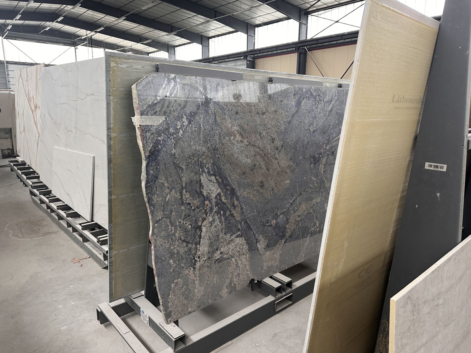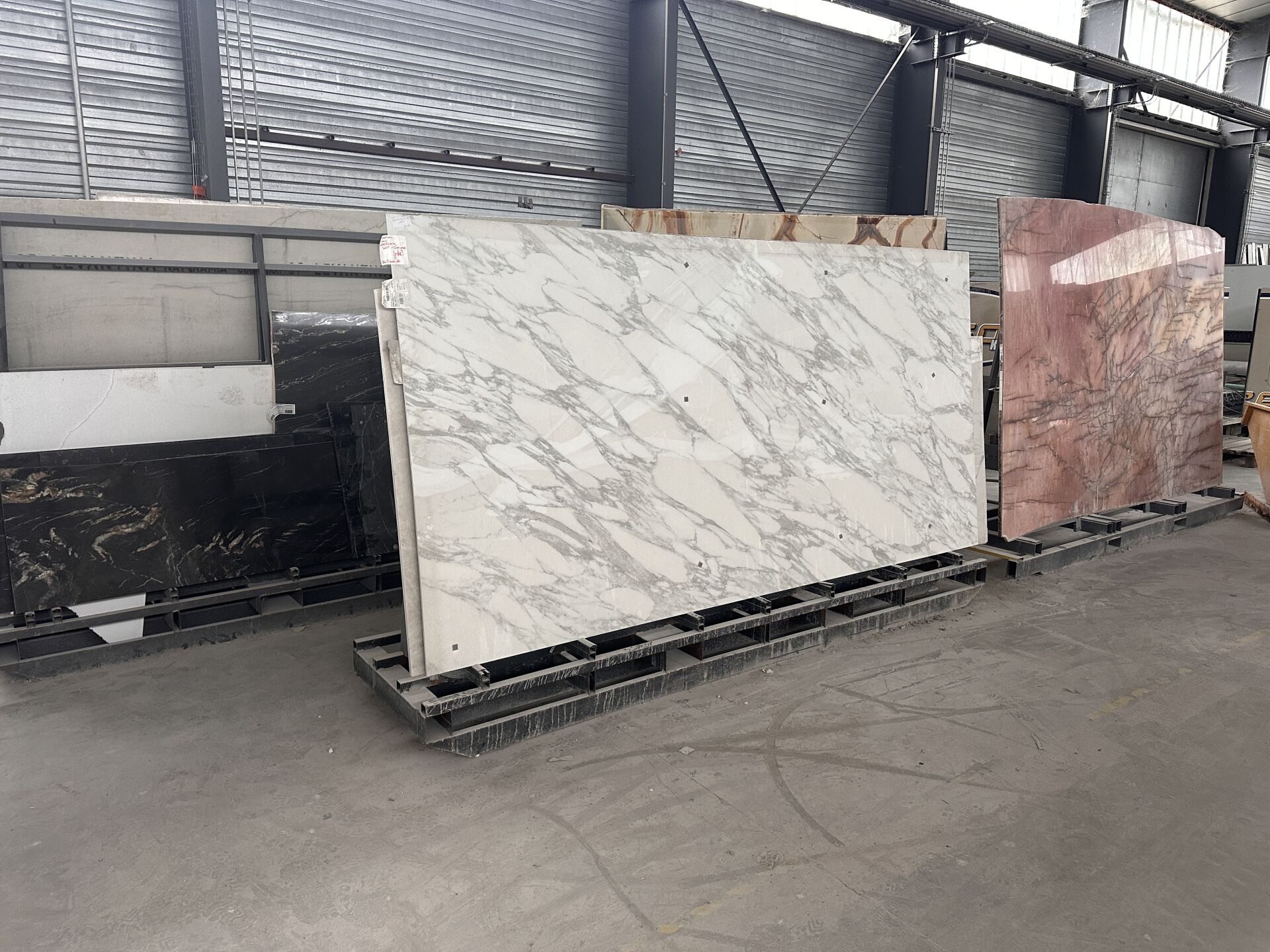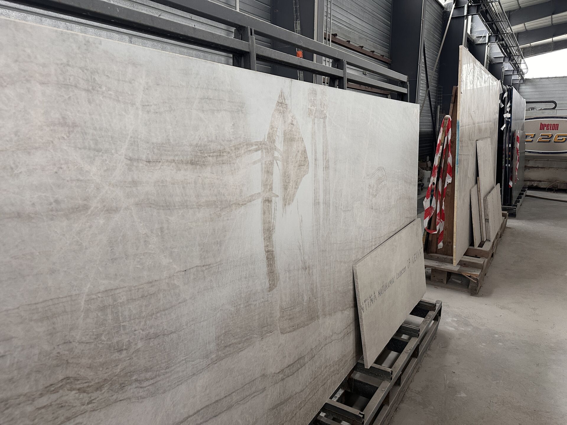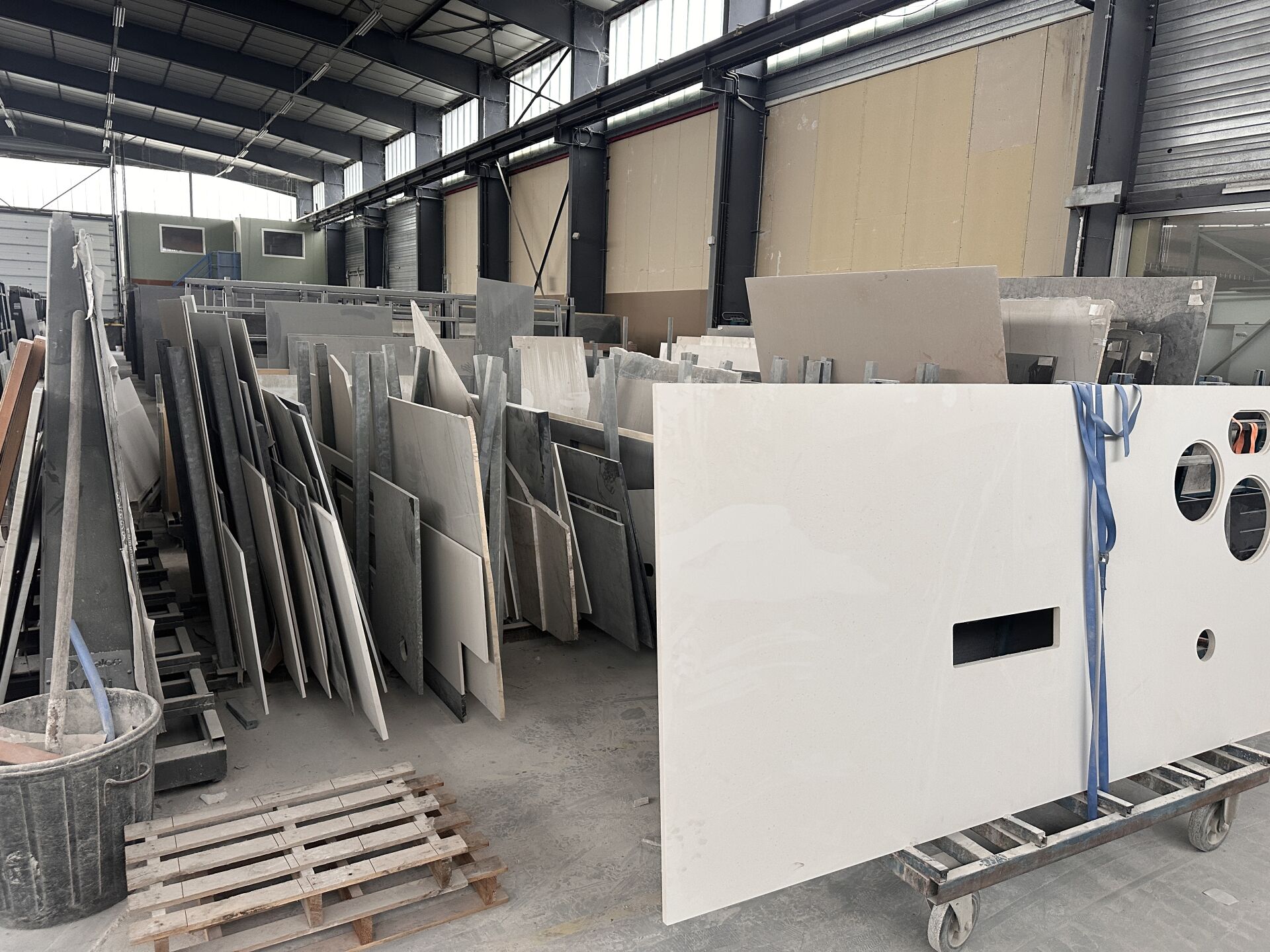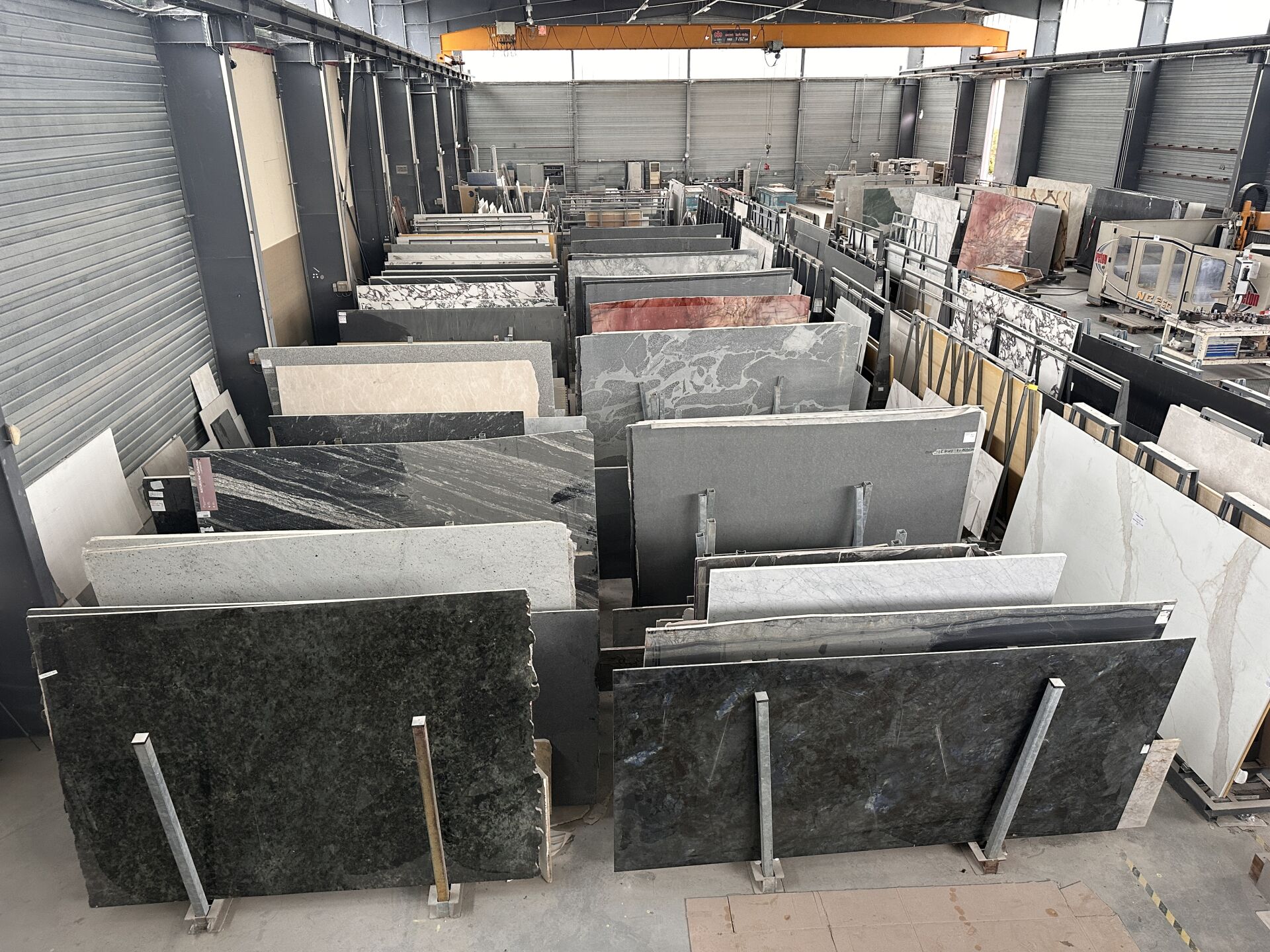 Environ 45 chevalets métal double face dont INALCO, TAS, Ensemble de barres métalliques formant râtelier sur environ 25 mètres linéaires Dans l'atelier : Stock d'environ 92 tranches de granit, marbres, pierres ou composites, céramique de différentes finitions et dimensions, de 12, 20 ou 30mm, Dans les bureaux : Stocks d'échantillons, de petites dimensions, de présentation de pierres, granits et marbres Frais de mise à disposition 100 € TTC