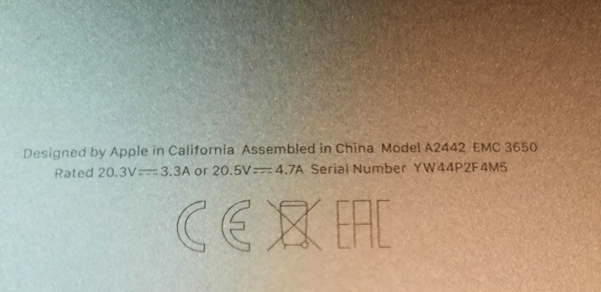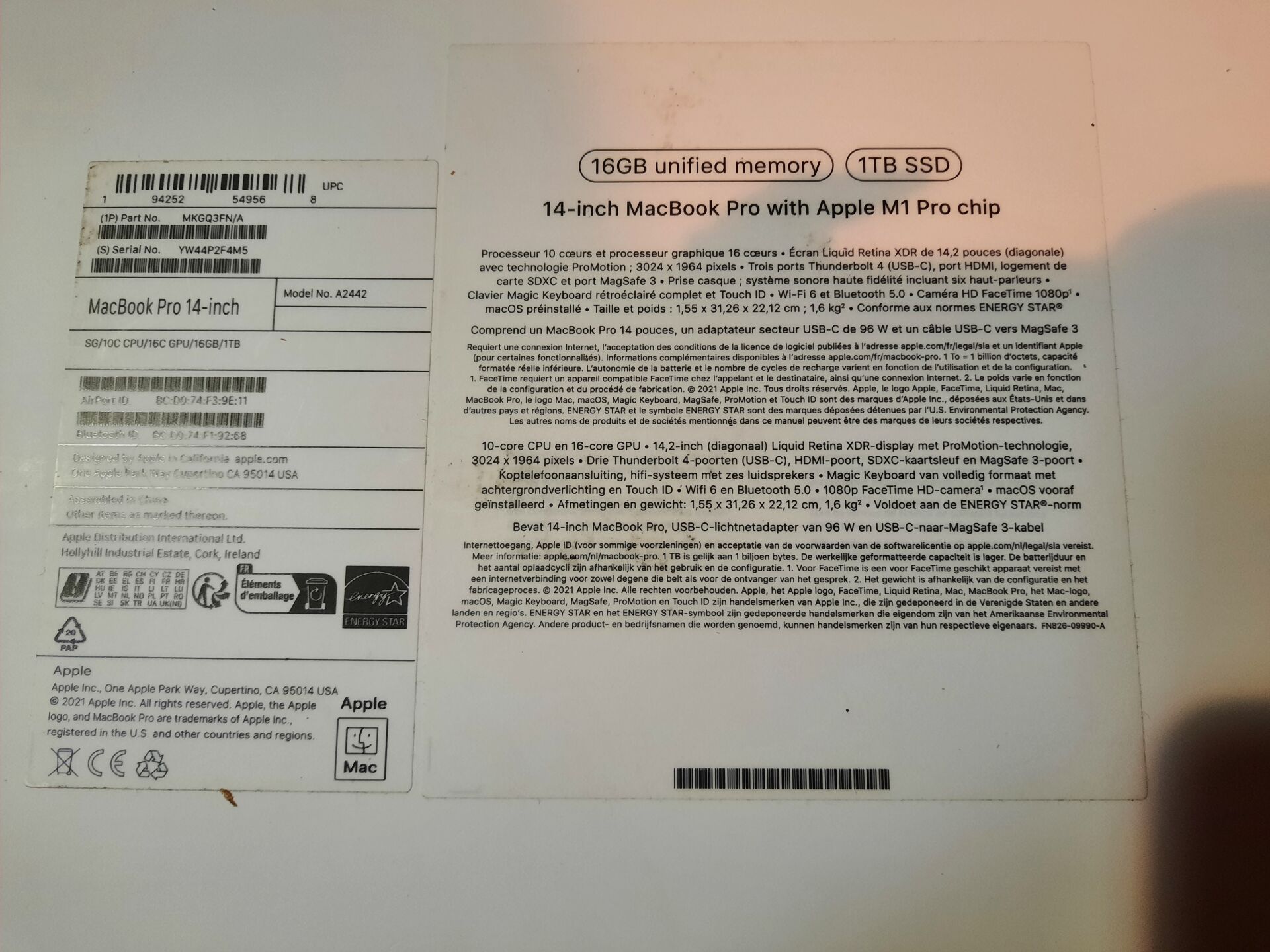Ordinateur portable APPLE MACBOOK PRO modèle A2442 16 GO, 1 IB SSD. NS : YW44P2F4M5 Clavier sans fil APPLE modèle A1843