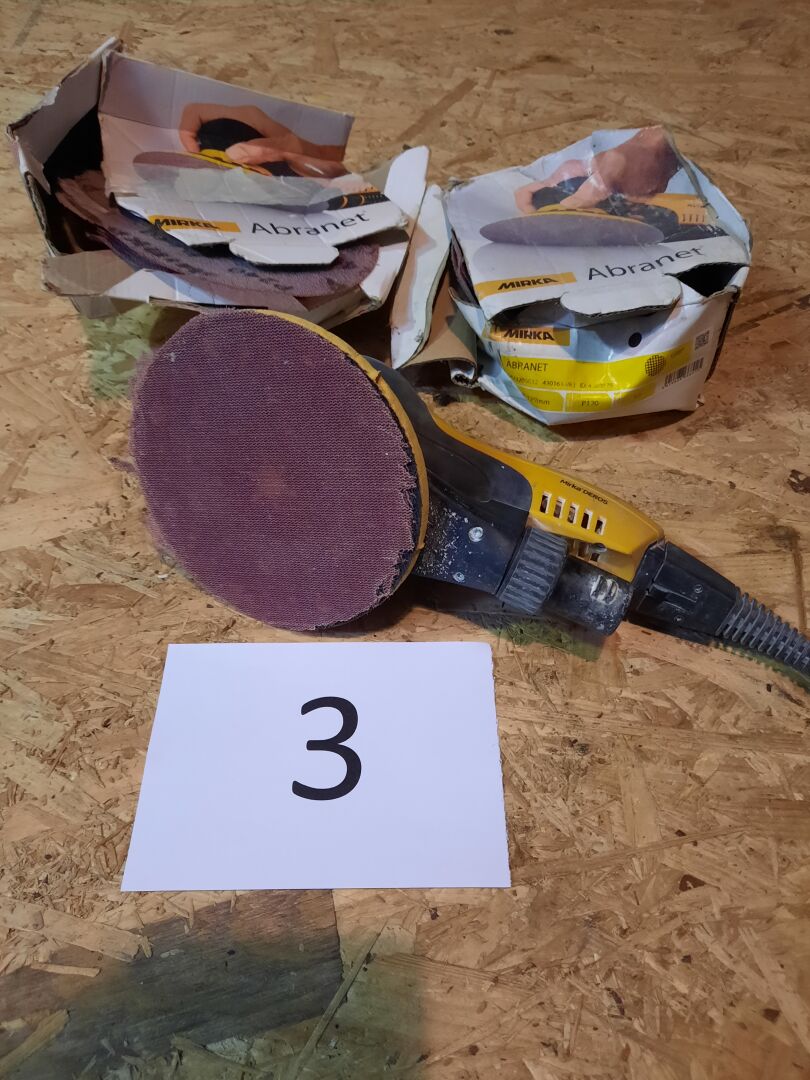 Ponceuse orbitale filaire MIRKA, modèle DEROS 125 mm On joint : Petit stock de disques abrasifs