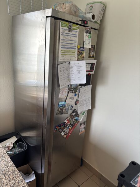 Armoire réfrigérée inox, à froid positif, groupe intégré. Haut. : 185 cm - Larg. : 60 cm - Prof. : 65 cm VENDUE SUR DESIGNATION - VISIBLE A MELLE LE 24/11 SUR RENDEZ - RETRAIT SUR RENDEZ VOUS UNIQUEMENT AVANT LE 08/12