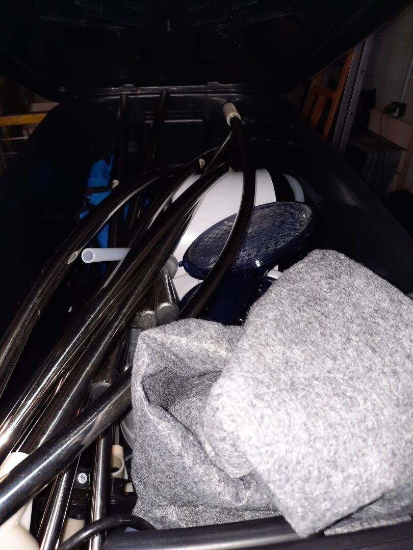 7 saunas portables démontés en caisse pvc noir, incomplet