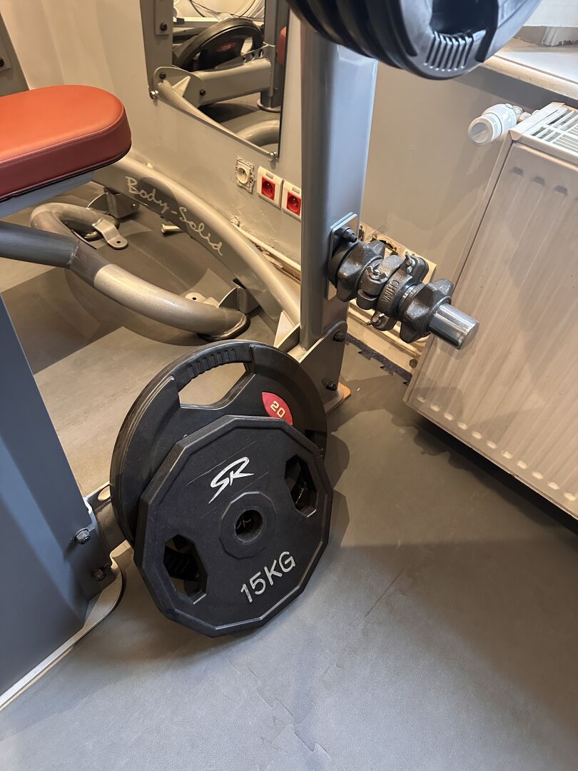 Banc de musculation BODY-SOLID modèle supposé SCB 1000 avec quatre haltères de 5 kg, huit haltères de 10 kg, deux haltères de 15 kg, deux haltères de 20 kg (usures à l'assise, vendu en l'état). A DEMONTER PROPREMENT SANS DOMMAGE A L IMMEUBLE - PREVOIR MOYENS DE MANUTENTION - ACTIFS SITUE A L ETAGE VENDU SUR DESIGNATION - VISIBLE A RENNES LE 24/11 SUR INSCRIPTION DE 8 H 30 A 9 H - RETRAIT DANS LES 15 JOURS SUIVANT LA VENTE SUR RDV LE MATIN UNIQUEMENT DE 8 H A 12 H ADRESSE COMMUNIQUEE EN PRENANT ATTACHE AVEC L ETUDE - INSCRIPTION A L EXPOSITION JUSQU AU 21/11