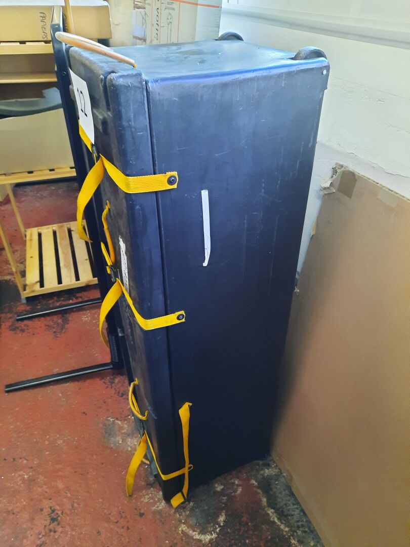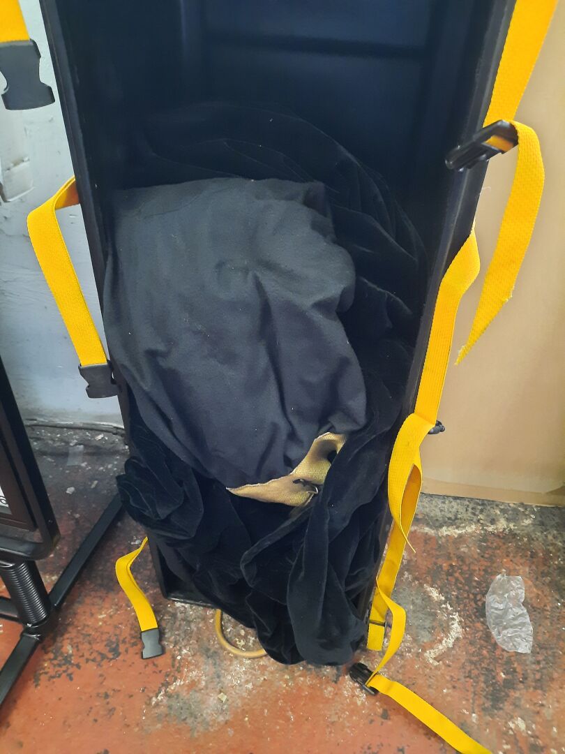 Etui FLYCASE HARDCASE 52 sur roues garni de rideaux de scènes. 131x39x37 cm