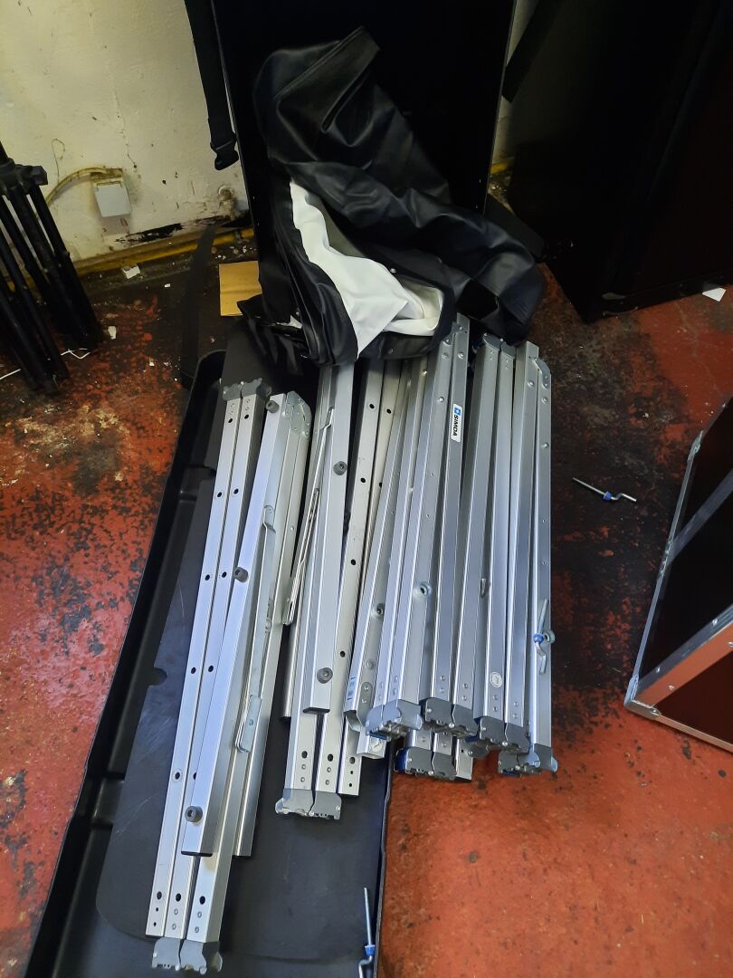 Structure mobile démontable et pliable en aluminium en coffret/caisse. 4x3 m déclarés