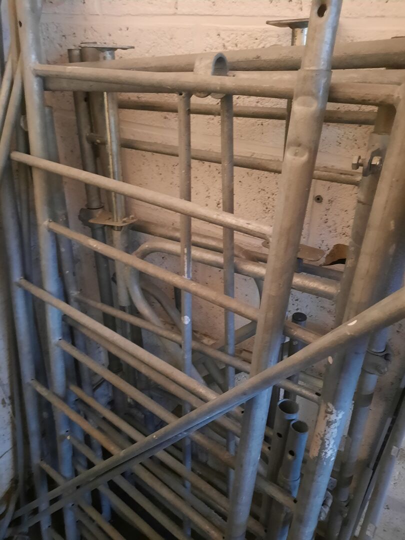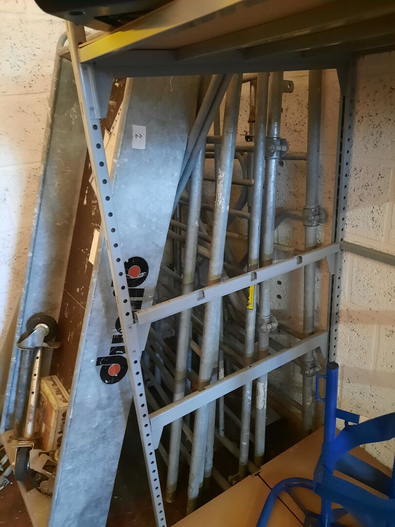 Échafaudage roulant DUARIB en acier galva 4 échelles (155 cm) et 4 pieds à roulette Plateau de bois à trappe (150 x 56 cm) 4 gardes-corps