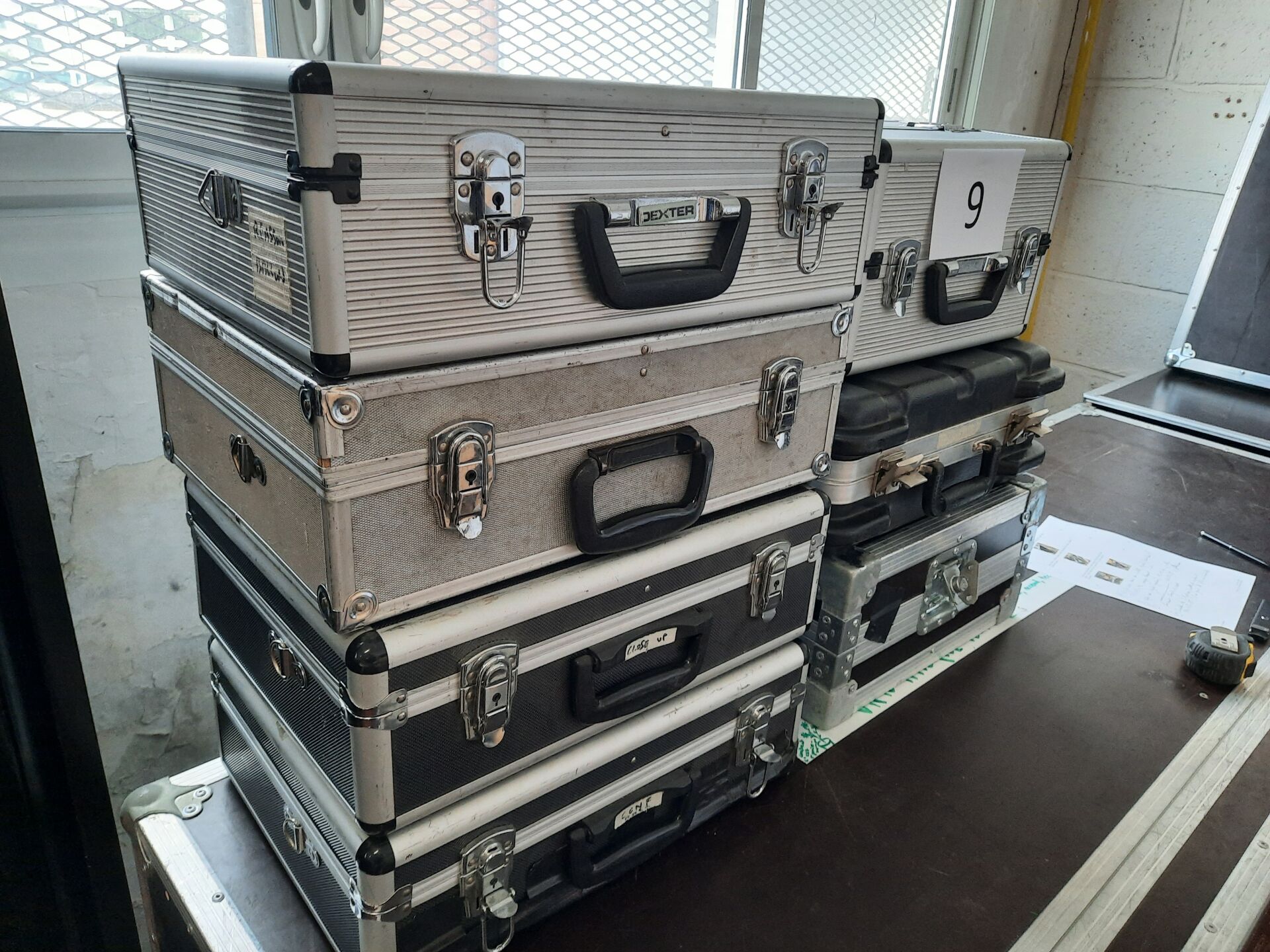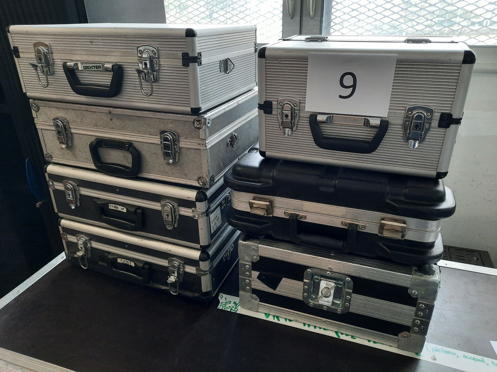 Ensemble de 7 flight cases / malettes de rangement (vides), tailles et formats divers