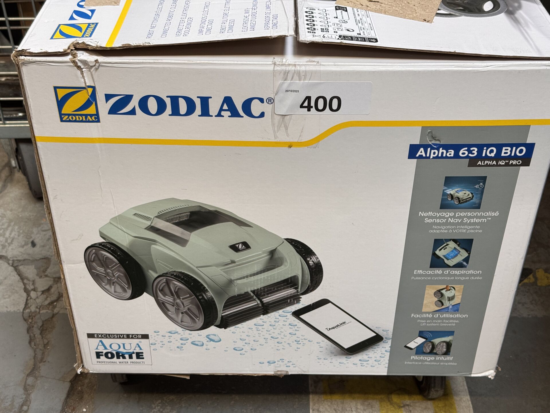 ROBOT DE PISCINE ZODIAC ALPHA 63 IQ BIO (expédition sur devis) Lot issu de colis non réclamés : état de fonctionnement non garanti. (la première image est une image d'illustration)