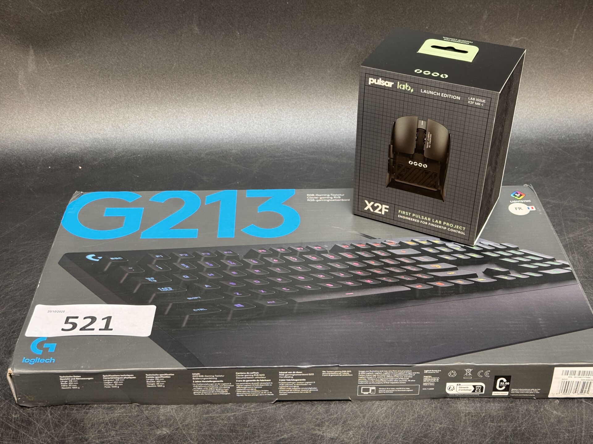 CLAVIER LOGITECH G213 + SOURIS PULSAR LAB X2F MK-1 EXPEDITION POSSIBLE (ce lot chez vous en France métropolitaine pour 27,45€) Lot issu de colis non réclamés : état de fonctionnement non garanti.