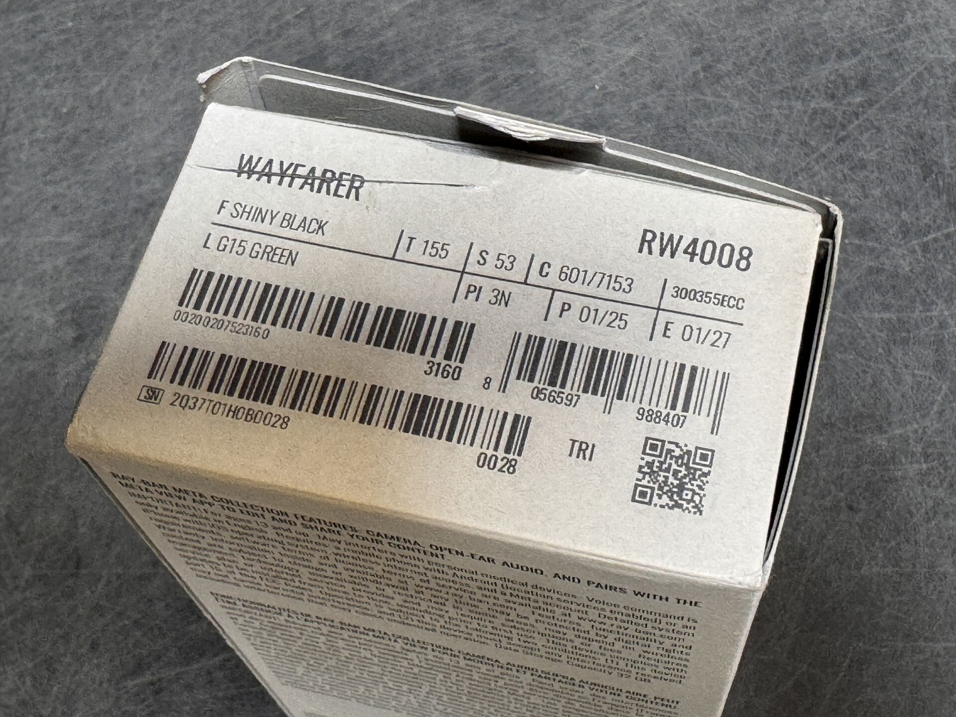 LUNETTES CONNECTEES RAY-BAN META WAYFARER SHINY BLACK G15 GREEN RW4008 (traces d'usage) EXPEDITION POSSIBLE (ce lot chez vous en France métropolitaine pour 25,80€) Lot issu de colis non réclamés : état de fonctionnement non garanti.