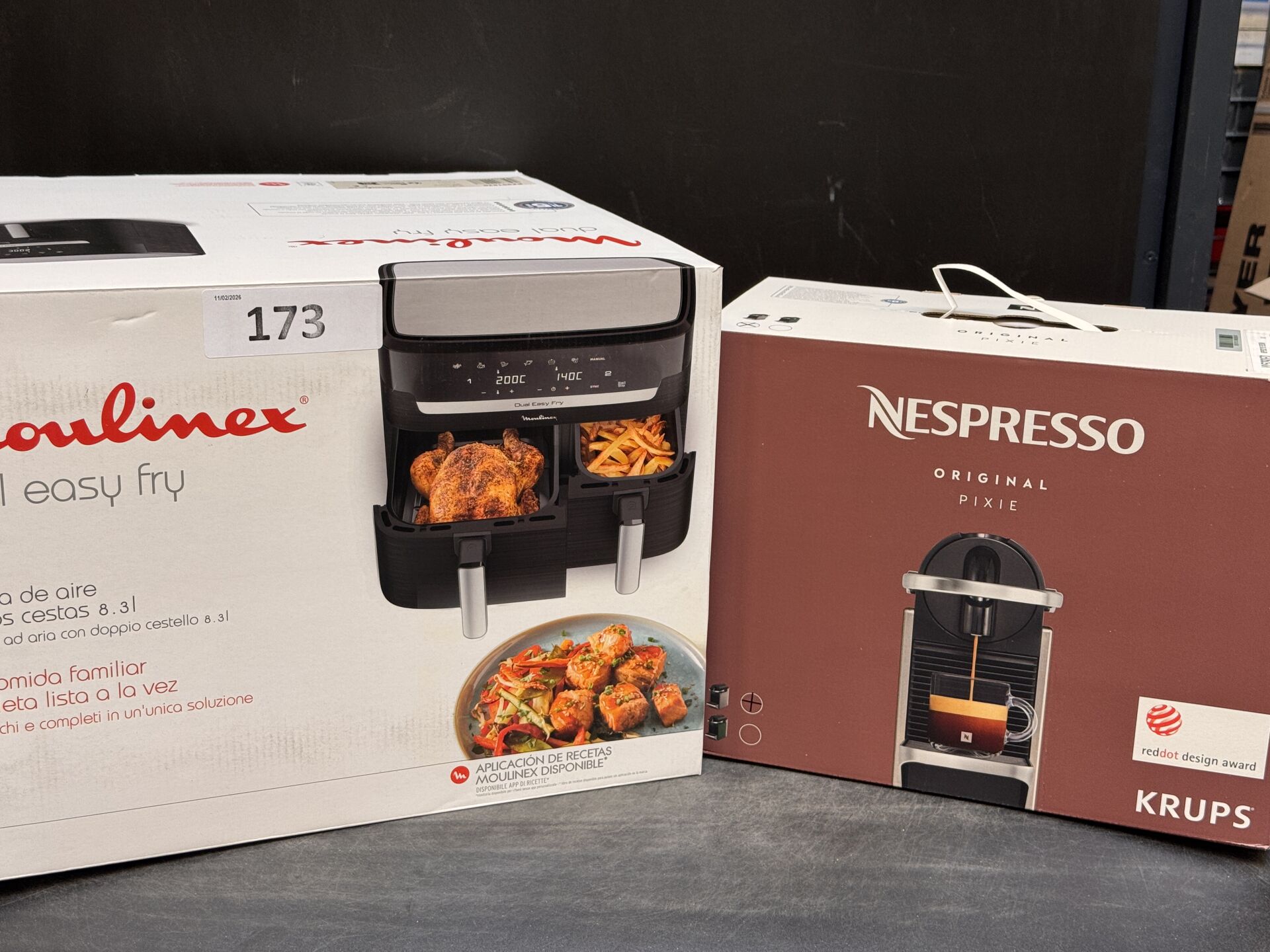 MACHINE A CAFE NESSPRESSO ORIGINAL PIXIE + AIRFRYER MOULINEX DUAL EASY (expédition sur devis) Lot issu de colis non réclamés : état de fonctionnement non garanti.