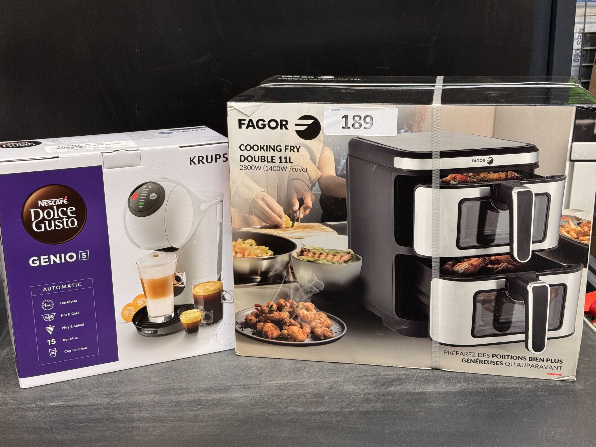 AIRFRYER FAGOR COOKING FRY DOUBLE 11L + MACHINE A CAFE KRUPS GENIO S (expédition sur devis) Lot issu de colis non réclamés : état de fonctionnement non garanti.