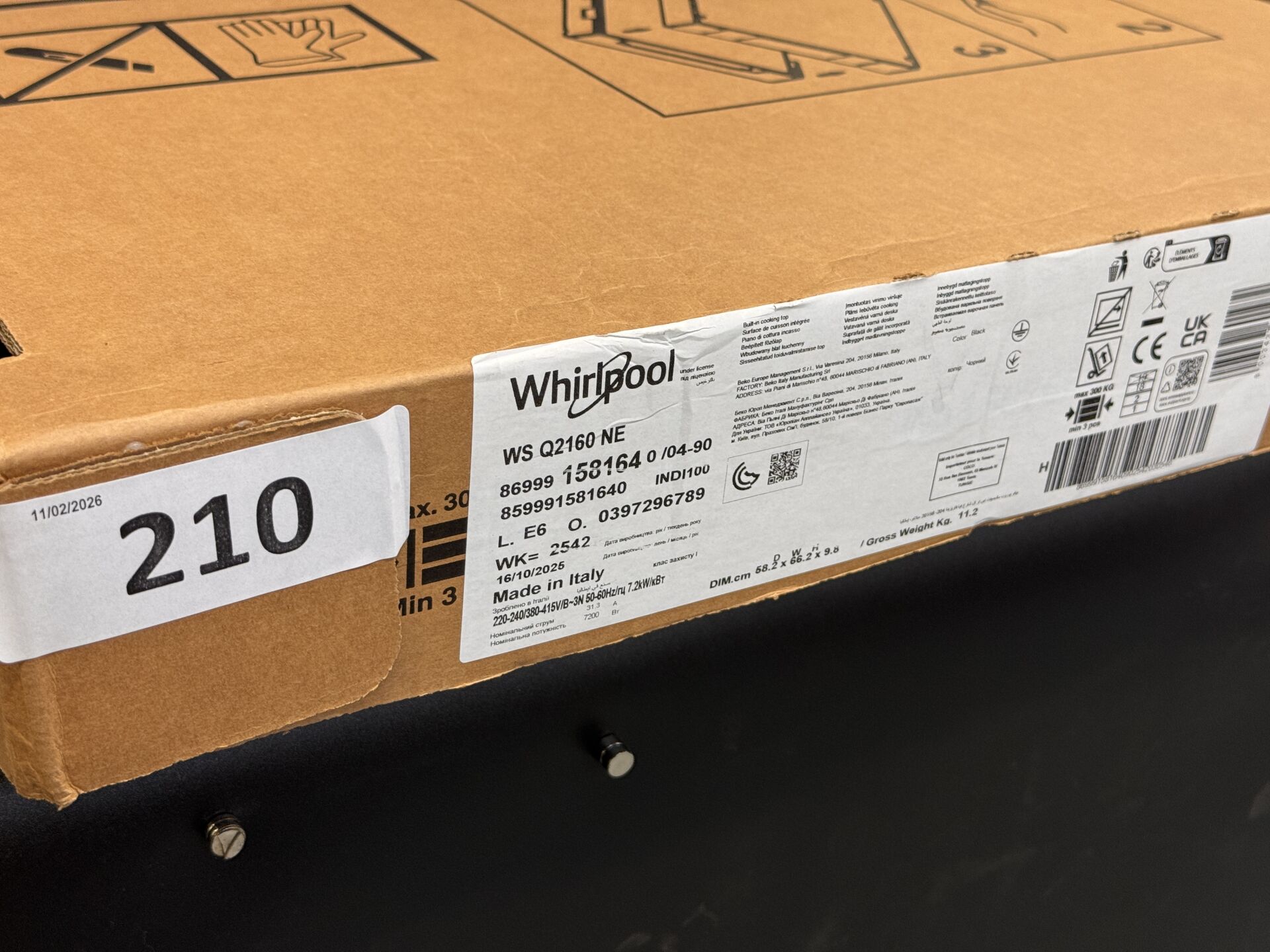 TABLE DE CUISSON INDUCTION WHIRLPOOL WSQ2160NE 8003437601972 EXPEDITION POSSIBLE (ce lot chez vous en France métropolitaine pour 32,18€) Lot issu de colis non réclamés : état de fonctionnement non garanti. (la première image est une image d'illustration)