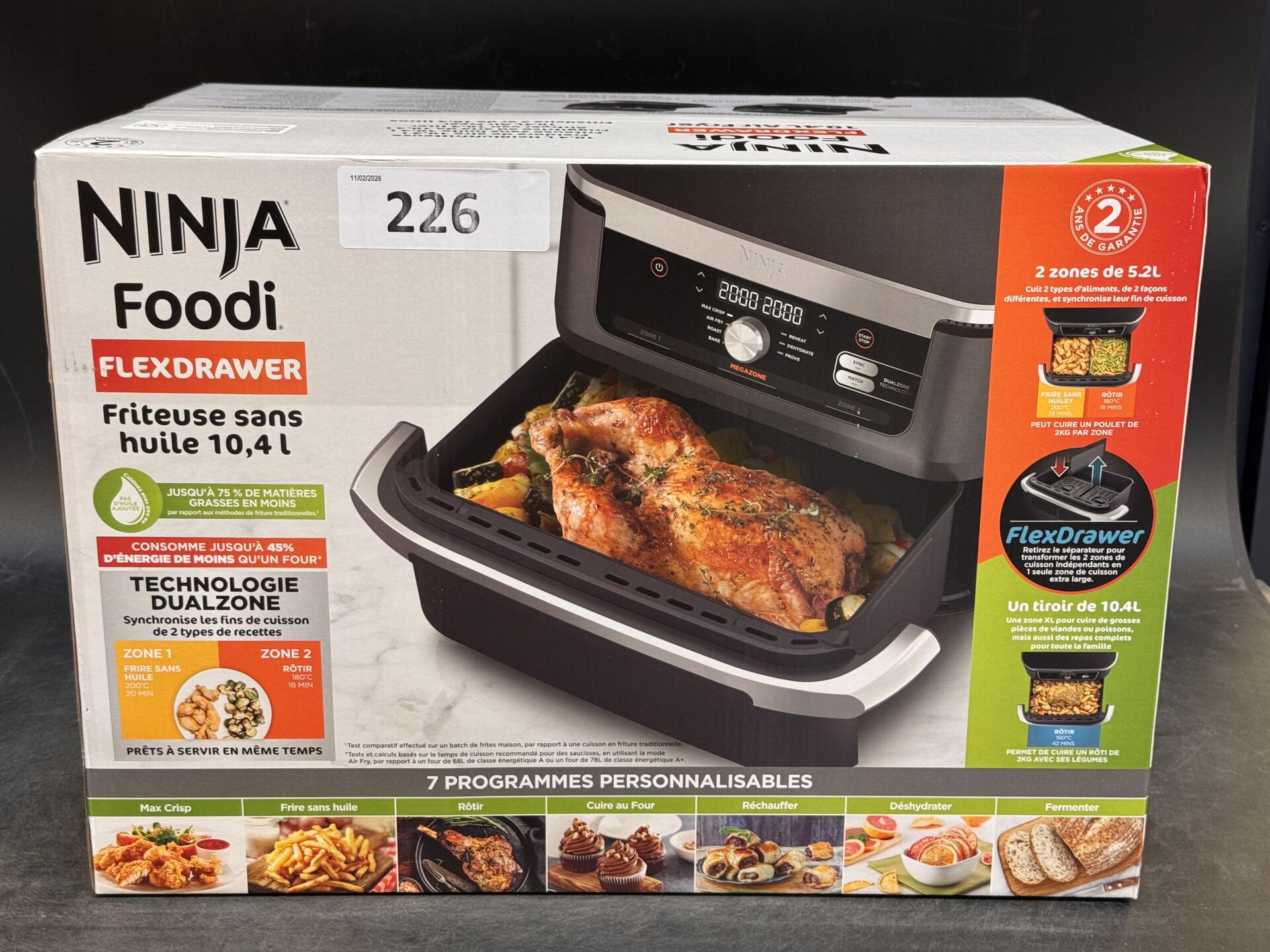 AIRFRYER NINJA FOODI FLEXDRAWER (avec scellés) EXPEDITION POSSIBLE (ce lot chez vous en France métropolitaine pour 43,45€) Lot issu de colis non réclamés : état de fonctionnement non garanti.