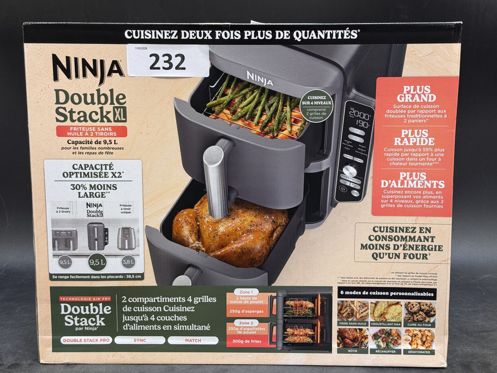 AIR FRYER NINJA DOUBLE STACK XL (avec scellés) EXPEDITION POSSIBLE (ce lot chez vous en France métropolitaine pour 44,94€) Lot issu de colis non réclamés : état de fonctionnement non garanti.
