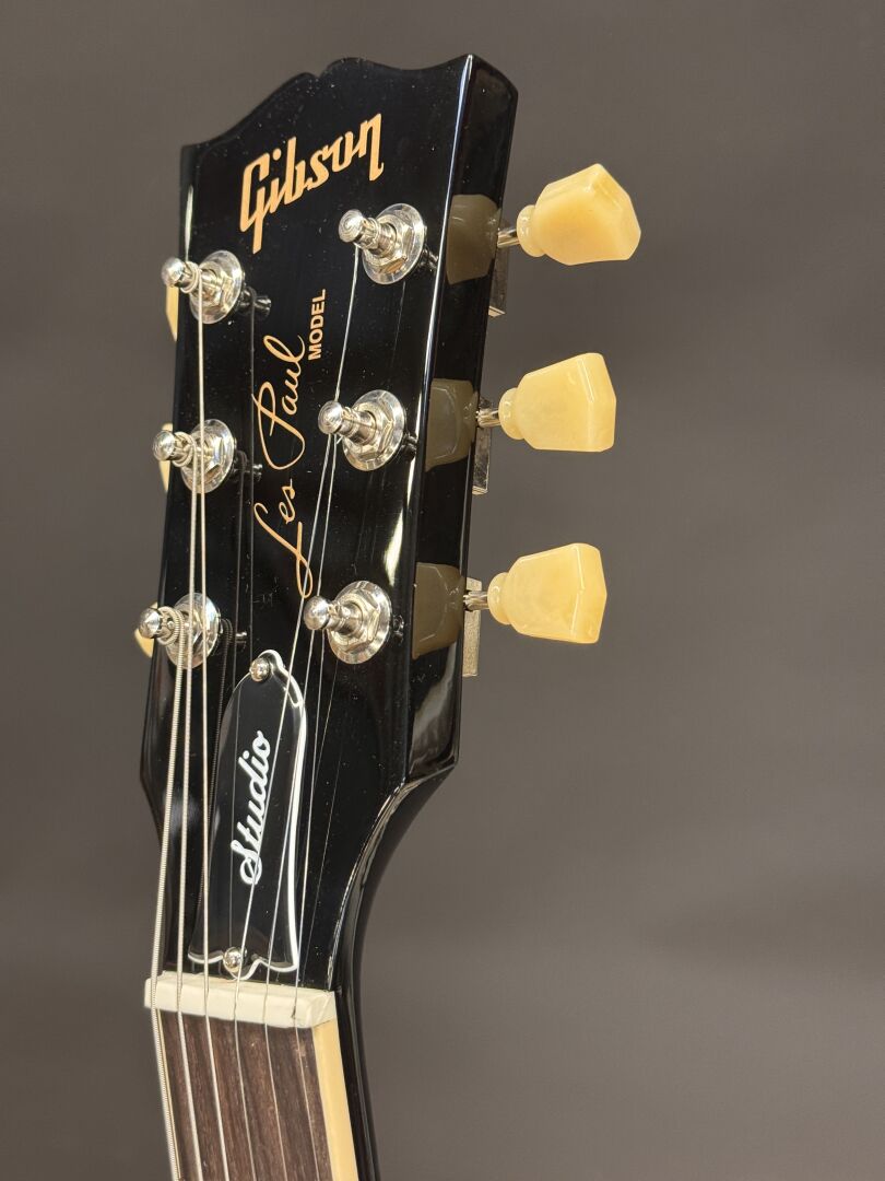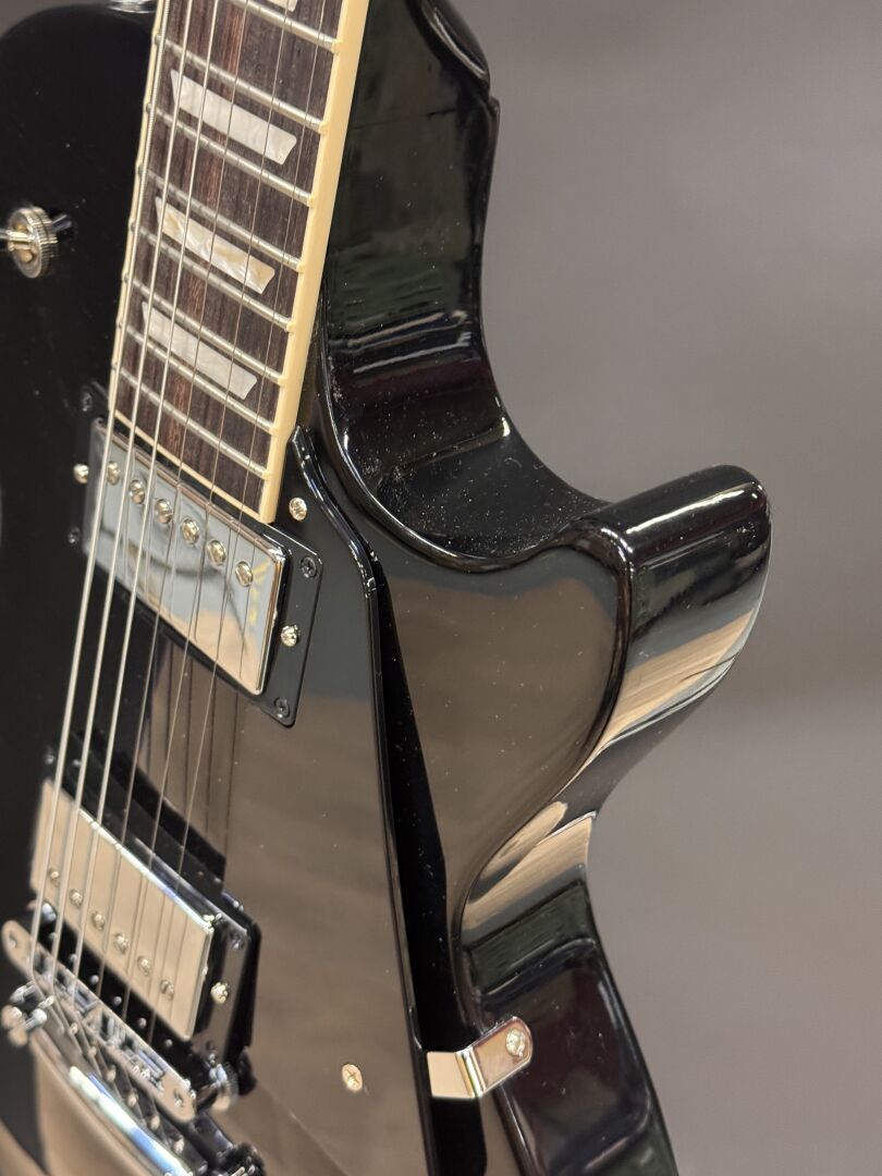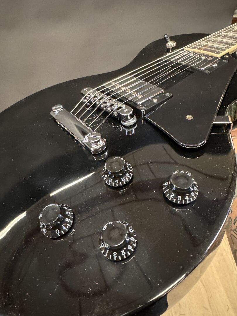 GUITARE ELECTRIQUE GIBSON LES PAUL STUDIO EBONY AVEC HOUSSE DE LA MARQUE & ACCESSOIRES (expédition sur devis) Lot issu de colis non réclamés : état de fonctionnement non garanti.