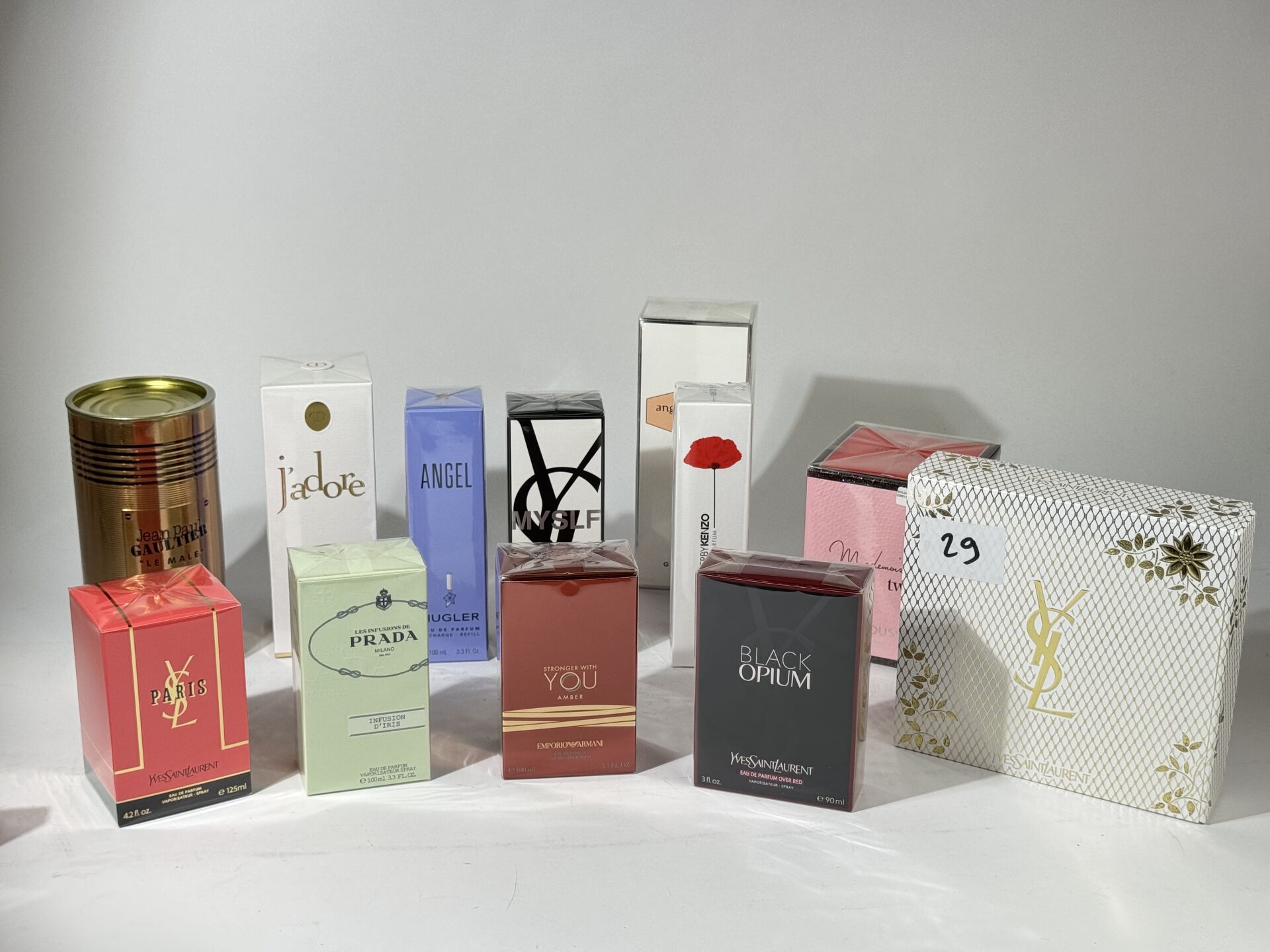 Ensemble d'environ 20 Eaux de Parfum dont YVES SAINT LAURENT, PRADA, DIOR, JEAN-PAUL GAULTIER, ARMANI, KENZO, MUGLER….. Différentes contenances