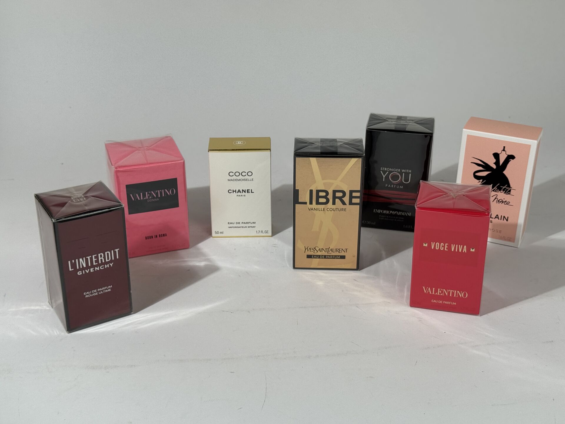 Ensemble d'environ 15 Parfums, eaux de parfums, Parfums intense en 50ml, dont : GUERLAIN, VALENTINO, MIU MIU, CHANEL, YVES SAINT LAURENT, GIVENCHY,PRADA,...