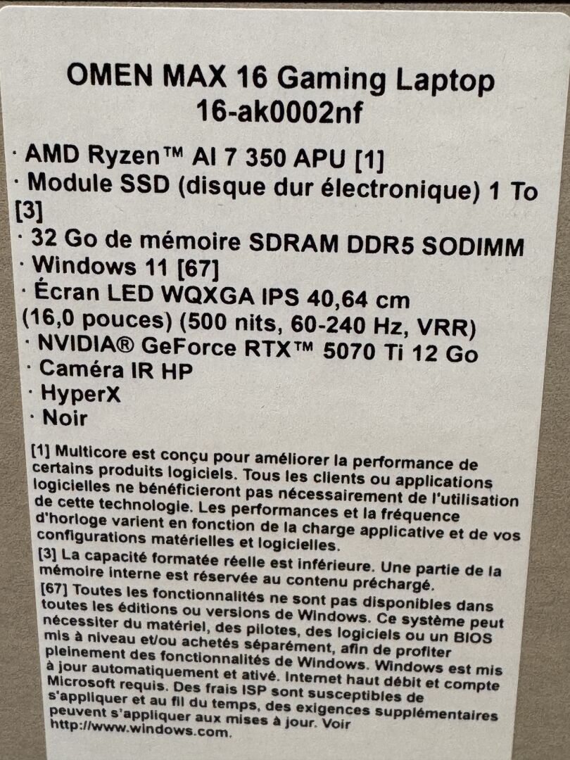 PC PORTABLE HP OMEN MAX 16 16-AK0002NF 198990977409 (avec scellés) EXPEDITION POSSIBLE (ce lot chez vous en France métropolitaine pour 32,18€) Lot issu de colis non réclamés : état de fonctionnement non garanti.