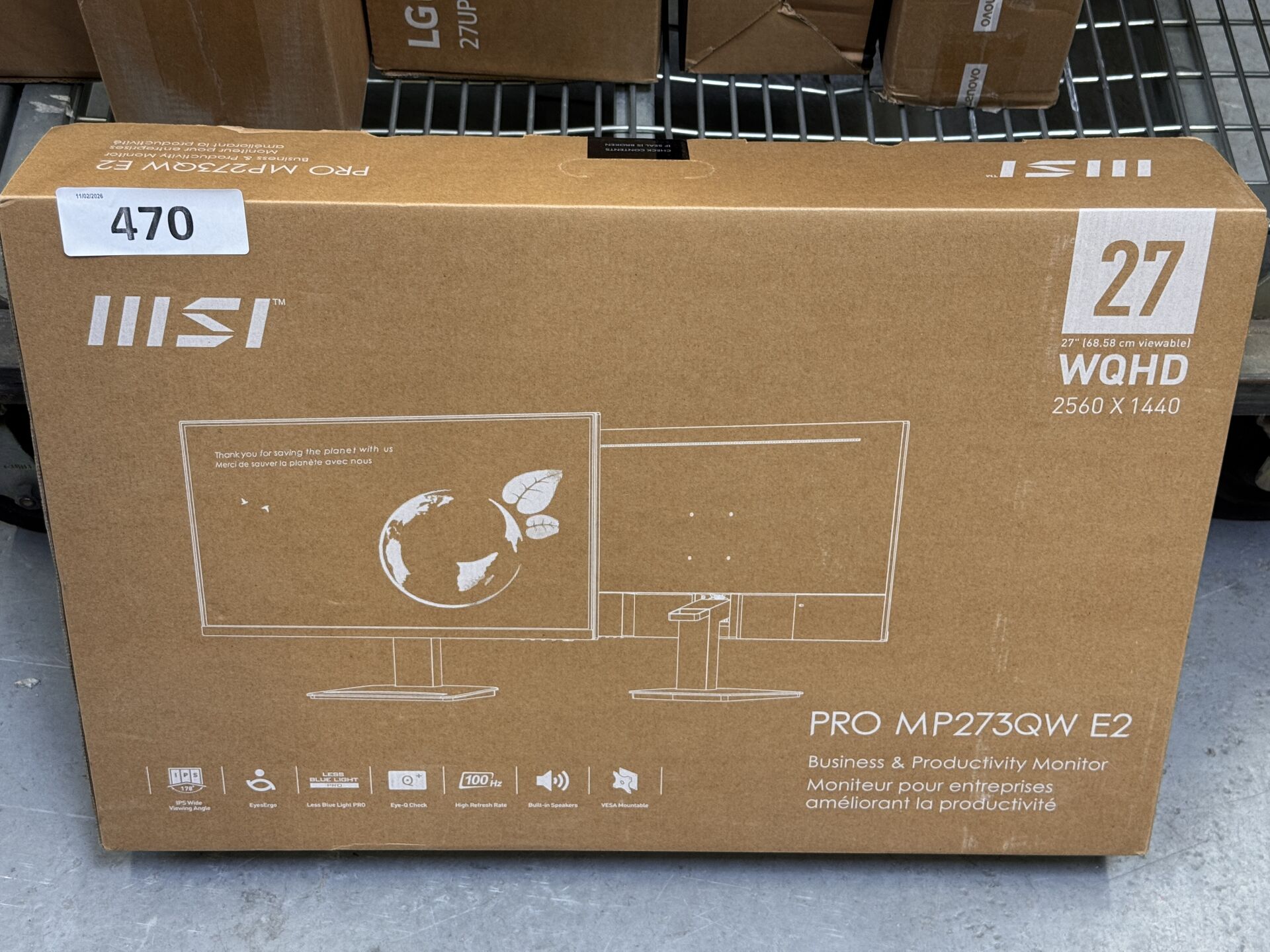 MONITEUR MSI 27" PRO MP 273QW-E2 4711377212854 (avec scellés) (expédition sur devis) Lot issu de colis non réclamés : état de fonctionnement non garanti. (la première image est une image d'illustration)