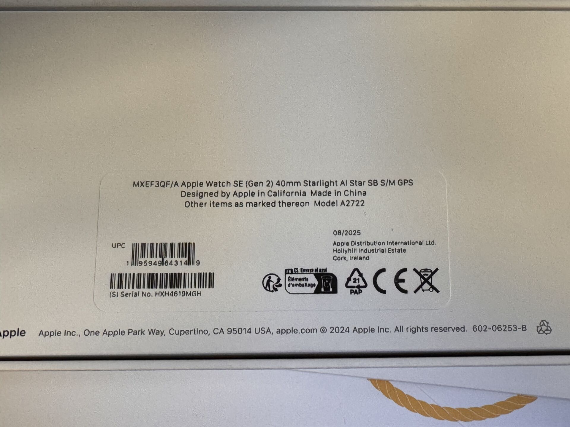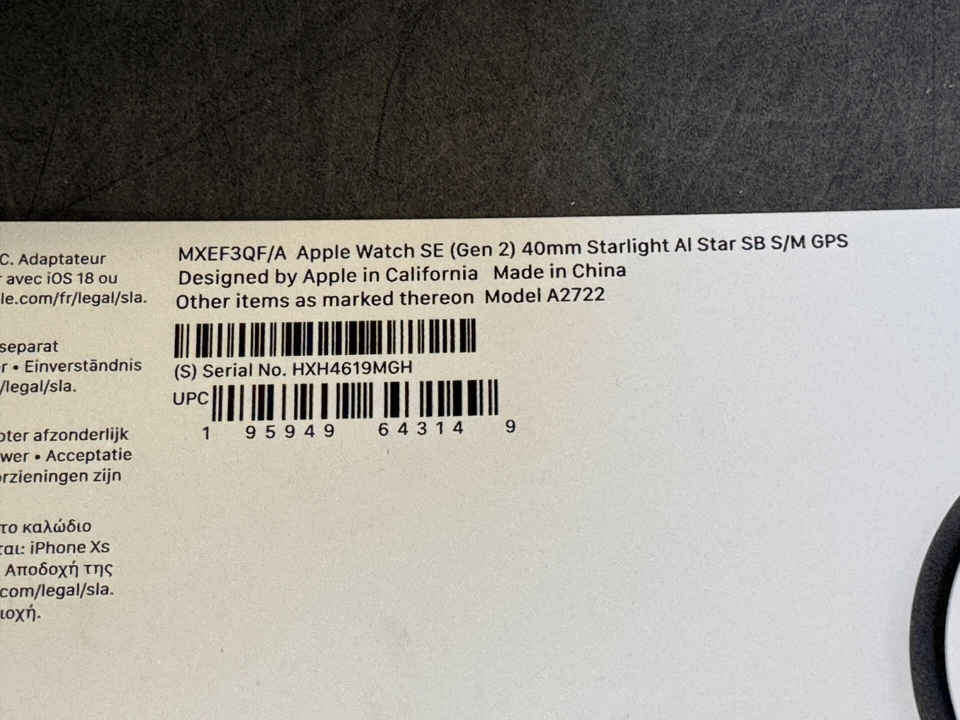 APPLE WATCH SE GEN 2 40MM STARLIGHT SN HXH4619MGH EXPEDITION POSSIBLE (ce lot chez vous en France métropolitaine pour 25,80€) Lot issu de colis non réclamés : état de fonctionnement non garanti.