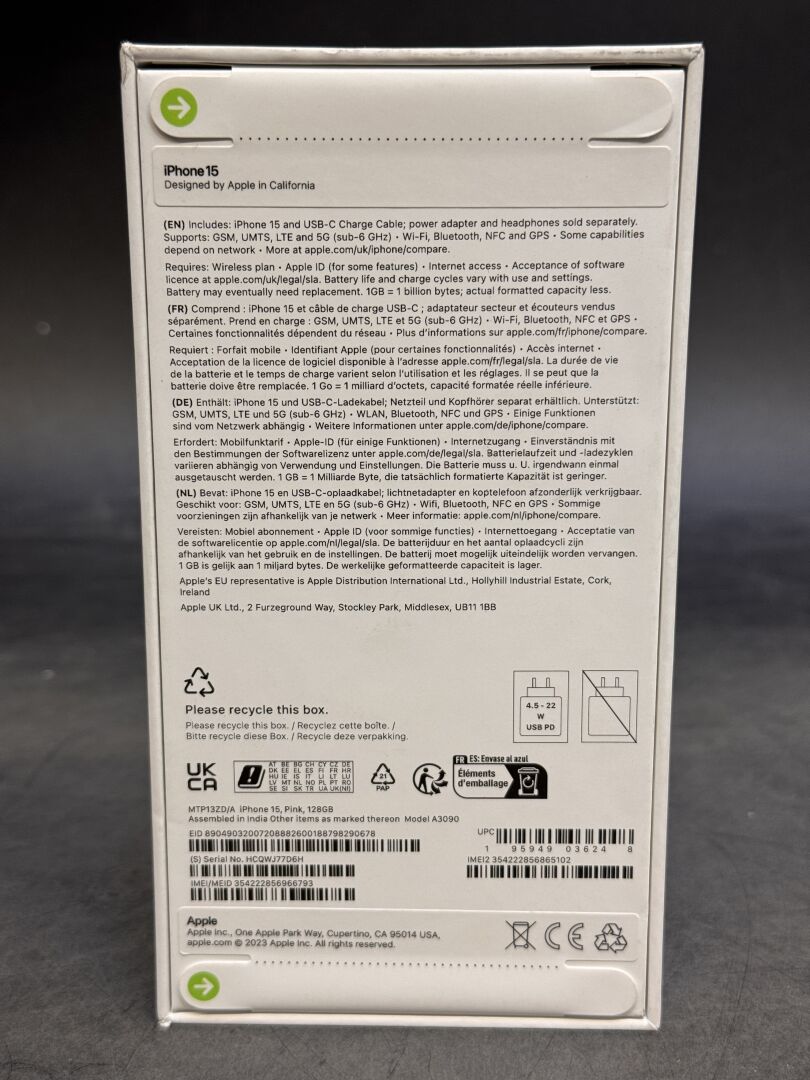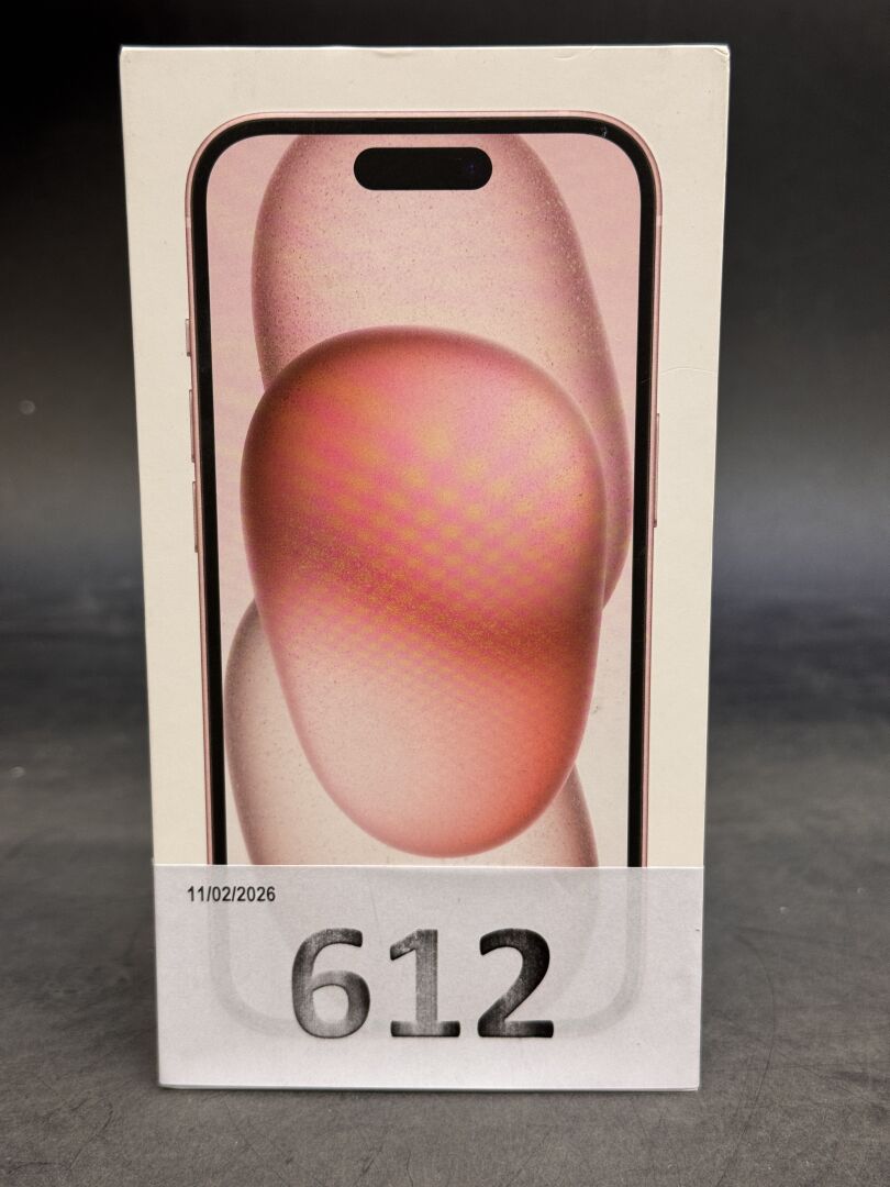 APPLE IPHONE 15 PINK 128GB (avec scellés) SN HCQWJ77D6H EXPEDITION POSSIBLE (ce lot chez vous en France métropolitaine pour 25,80€) Lot issu de colis non réclamés : état de fonctionnement non garanti.