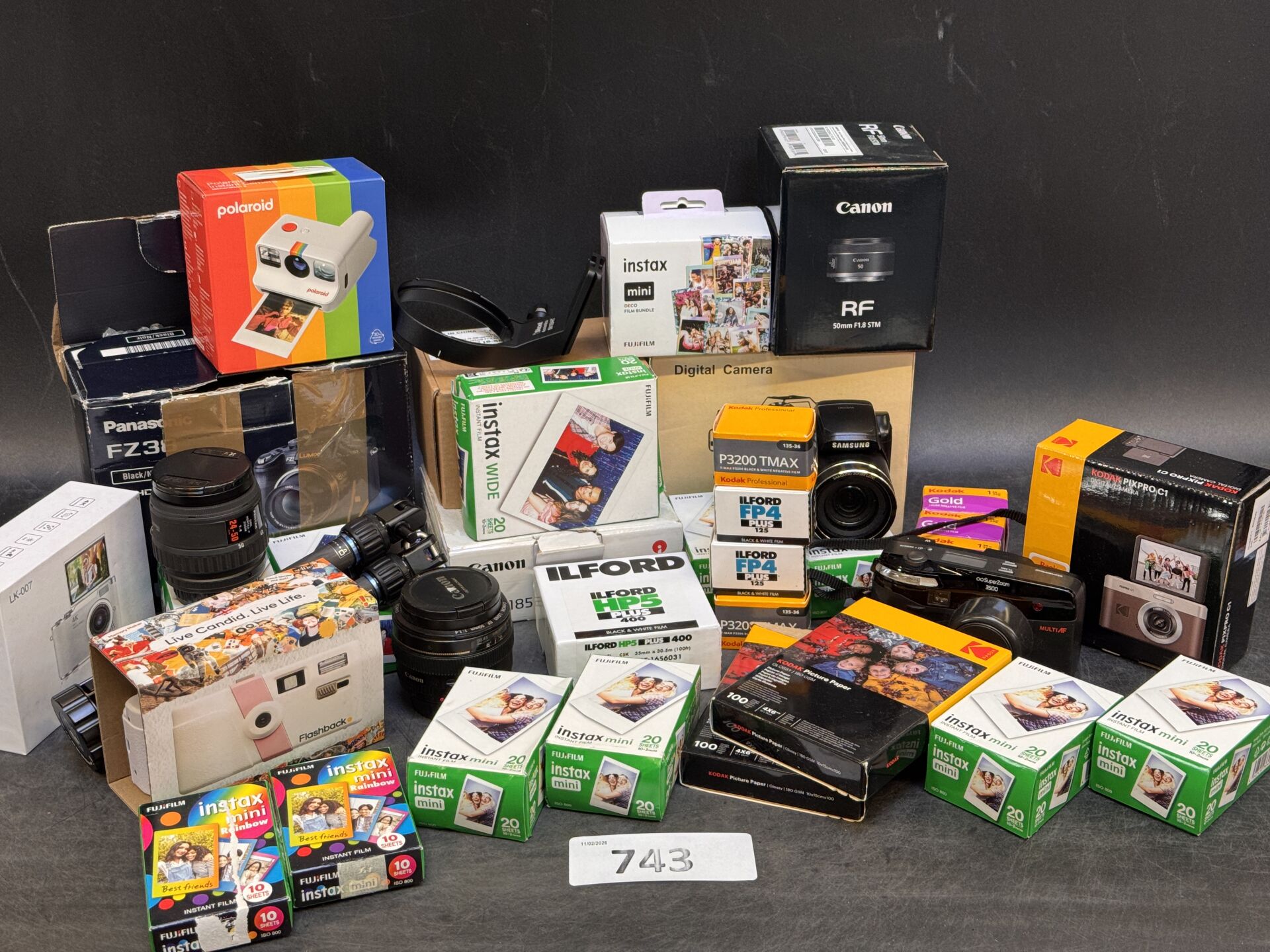ENSEMBLE D'APPAREILS, OBJECTIFS, CONSOMMABLES ET ACCDESSOIRES PHOTO DONT POLAROID, CANON, ILFORD, KODAK EXPEDITION POSSIBLE (ce lot chez vous en France métropolitaine pour 37,90€) Lot issu de colis non réclamés : état de fonctionnement non garanti.