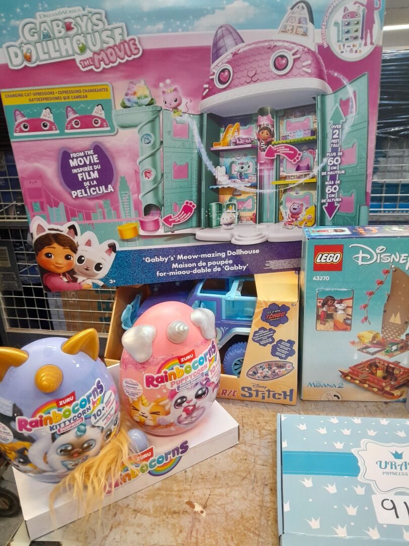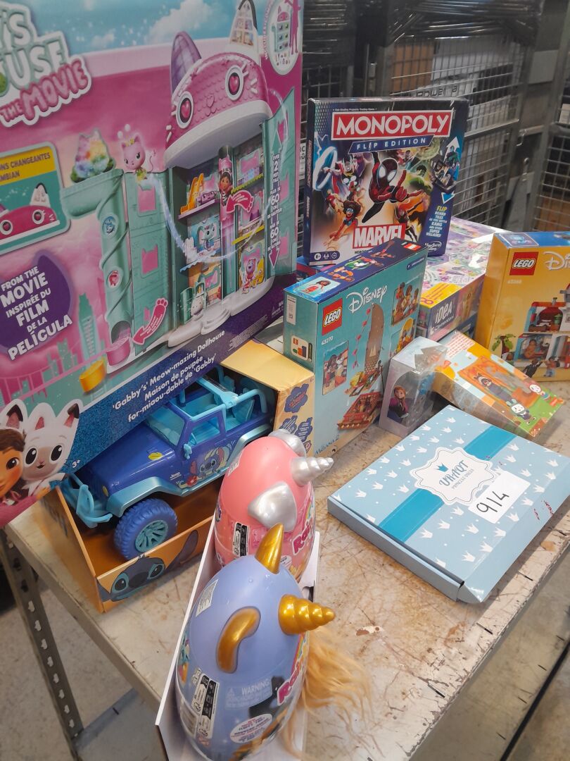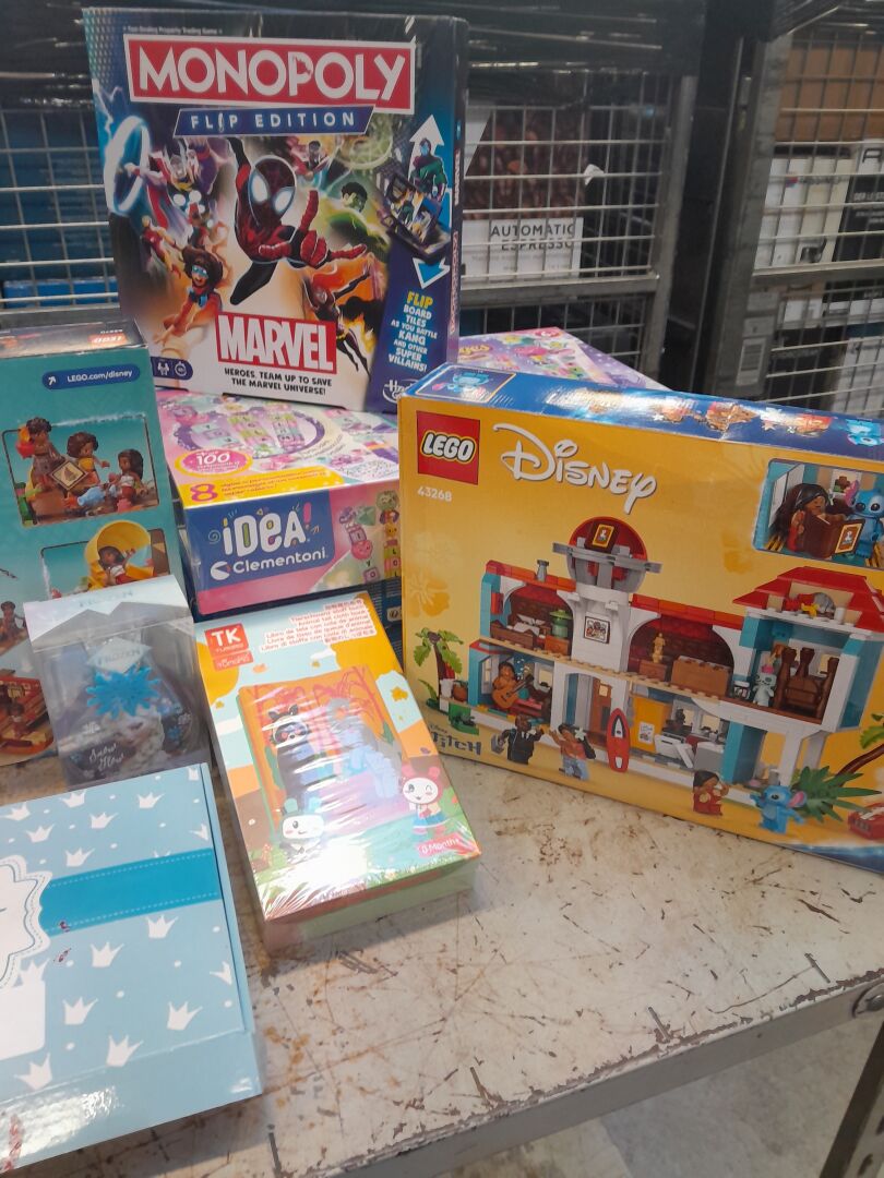 ENSEMBLE LUDIQUE D'ENVIRON 12 JEUX ET JEUX DE SOCIETE POUR ENFANTS DONT : MOANA 2 LEGO 43270 , LILO ET STITCH LEGO 43268 , VOITURE RADIOTELECOMANDE LILO ET STITCH DISNEY , MAISON DE POUPEE GABBYS DOLLHOUSE DREAMWORKS , MONOPOLY FLIP EDITION MARVEL (expédition sur devis) Lot issu de colis non réclamés : état de fonctionnement non garanti.