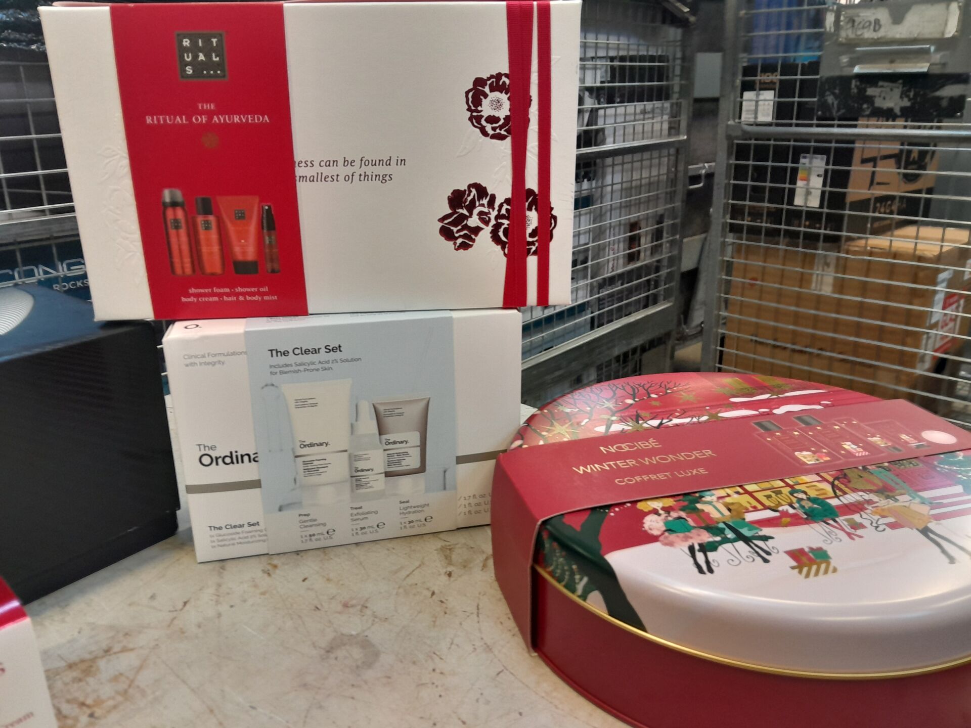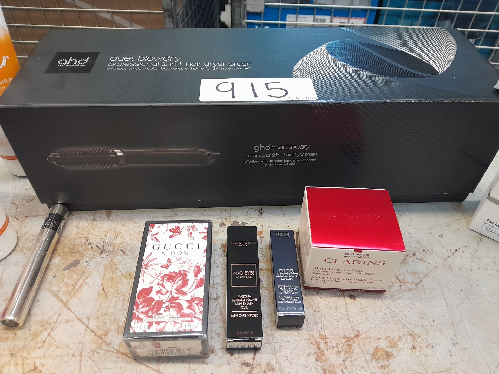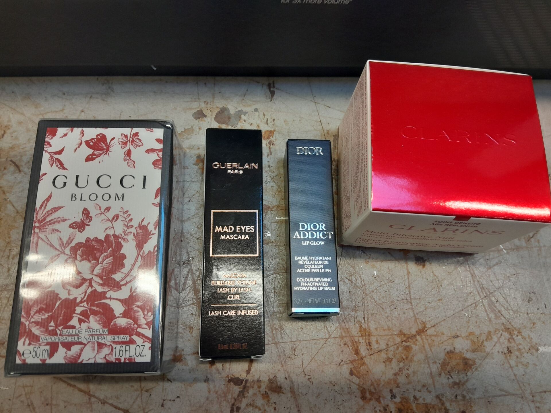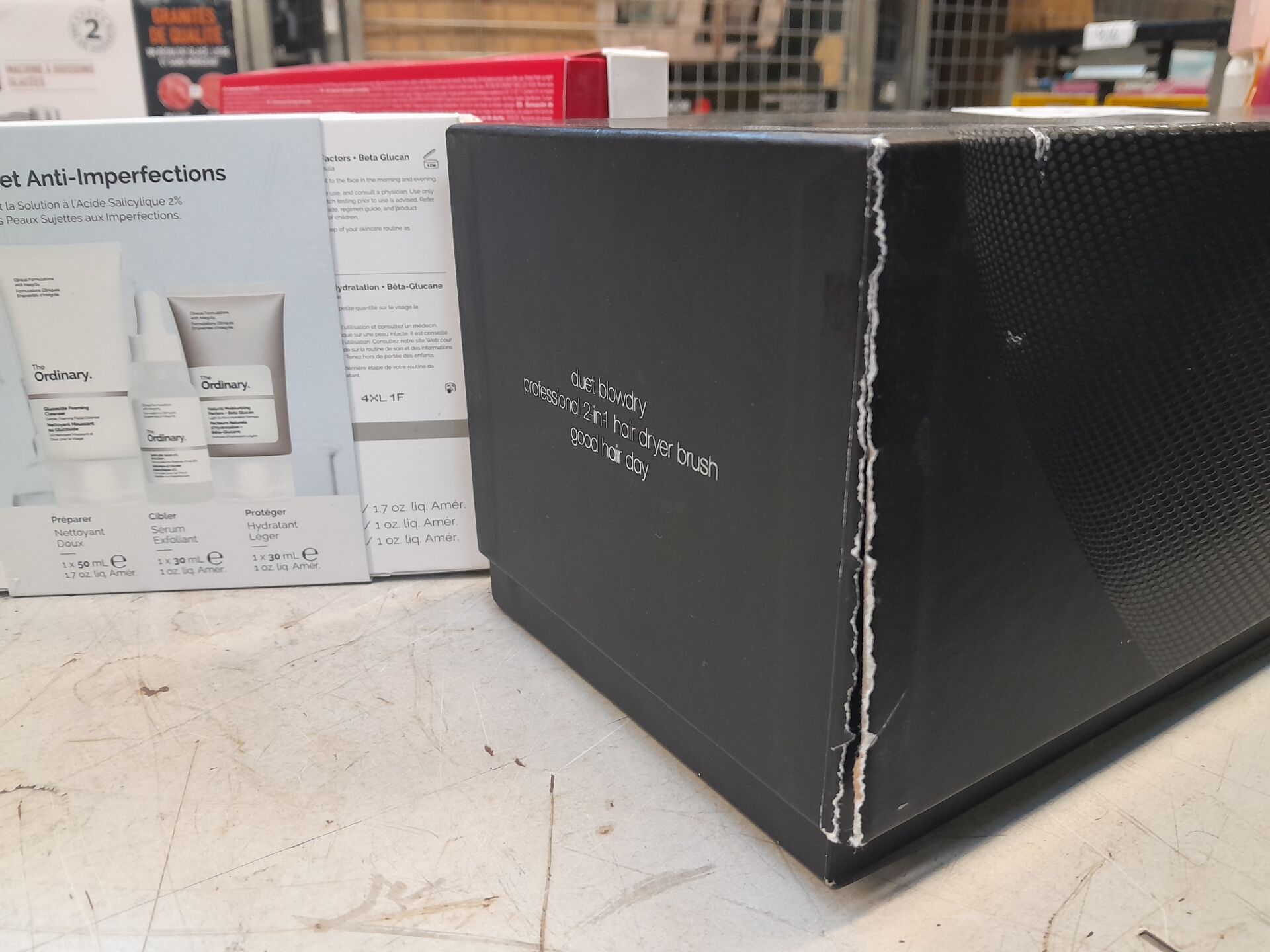 ENSEMBLE BEAUTE COMPRENANT COFFRET BROSSE SOUFFLANTE GHB DUET BLOWDRY , ENVIRON 15 ACCESSOIRE DE BEAUTE DONT PARFUM GUCCI BLOOM , MASCARA GUERLAIN , BAUME HYDRATANT DIOR , COFFRET LUXE NOCIBE (expédition sur devis) Lot issu de colis non réclamés : état de fonctionnement non garanti.