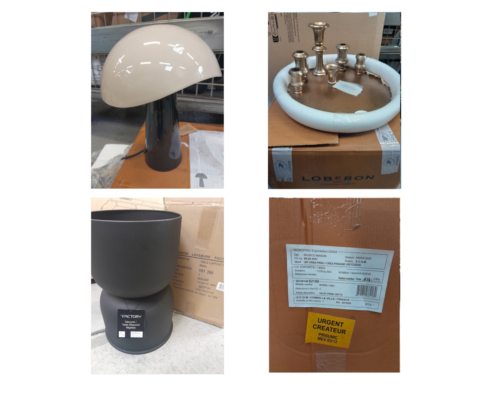 FORT ENSEMBLE DE PETITS MOBILIERS ET DECORATIONS (environ 1m3) DONT TABLE ET CHAISE DE BUREAU , TABOURET / TABLE D'APPOINT , SOFAS , LAMPE , CHANDELIER , PORTE SERVIETTE / LOBERON , FACTORY , LEITMOTIV , LOBERON , VERTBAUDET , MONOPRIX , MANUTAN (expédition sur devis) Lot issu de colis non réclamés : état de fonctionnement non garanti.