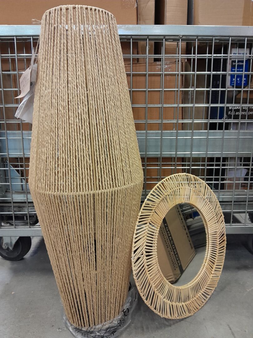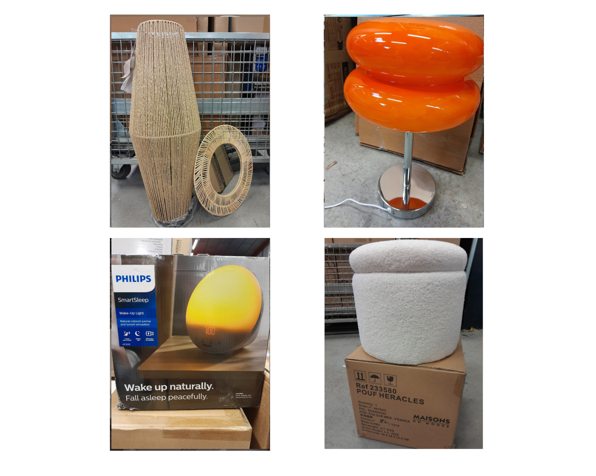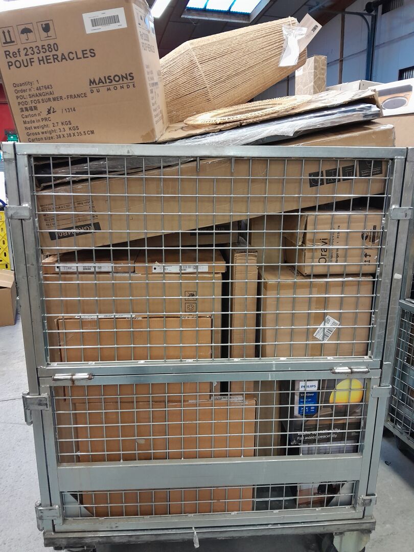 FORT ENSEMBLE DE PETITS MOBILIERS ET DECORATIONS (environ 1m3) DONT ARMOIRE , PORTE SERVIETTE , LAMPADAIRE , LAMPE , REVEIL , POUF , MIROIR / MAISONS DU MONDE , PHILIPS , INSPIRE , MONOPRIX , HOME DECO , SONGMICS , IKEA (expédition sur devis) Lot issu de colis non réclamés : état de fonctionnement non garanti.