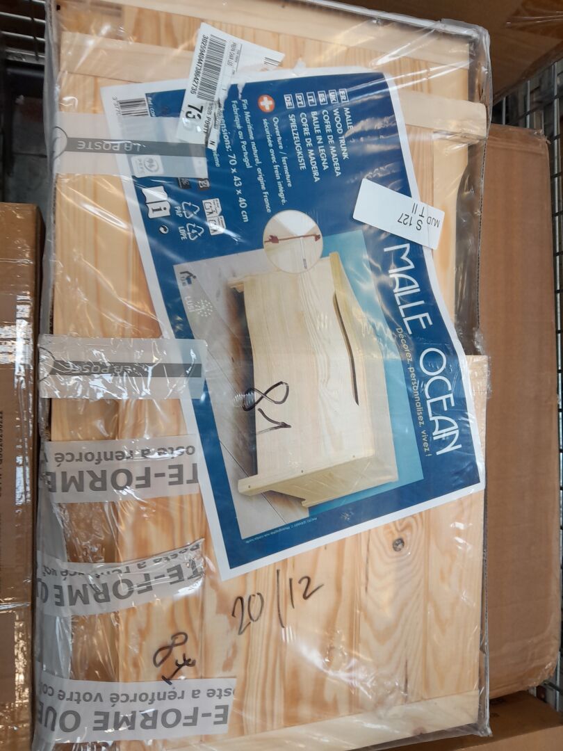 FORT ENSEMBLE DE PETITS MOBILIERS ET DECORATIONS (environ 1m3) DONT LAMPE , TABOURET , HORLOGE , LAMPE EXTERIEURE , COFFRE , TABLE BASSE , FAUTEUIL , BUREAU , VASE / SKOLM , VERTBAUDET , HOME DECO , MALLE OCEAN , UNILUX , INSPIRE , APEX , IKEA (expédition sur devis) Lot issu de colis non réclamés : état de fonctionnement non garanti.
