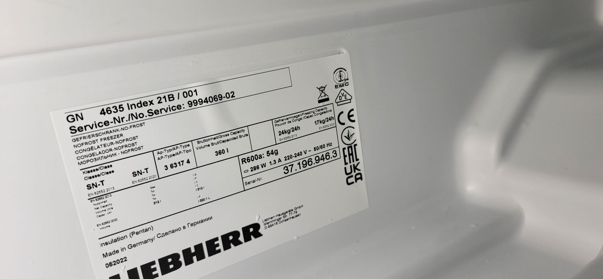 1 armoire réfrigérée à froid négatif LIEBHEER, 360 L 70 x 75 x 175 cm
