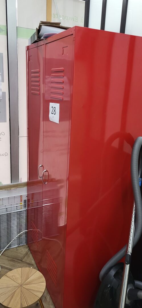 1 armoire 2 portes métal rouge 85 x 50 x 181 cm , 1 miroir 177 x 57 cm 1 aspirateur traineau MIELE Complete C2
