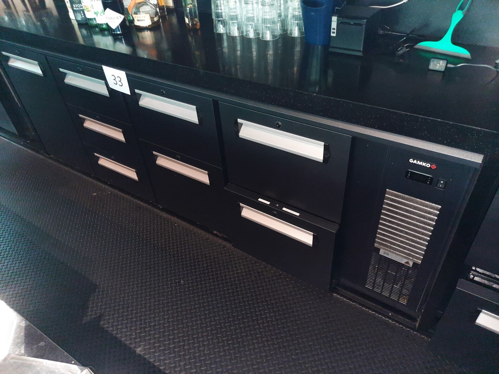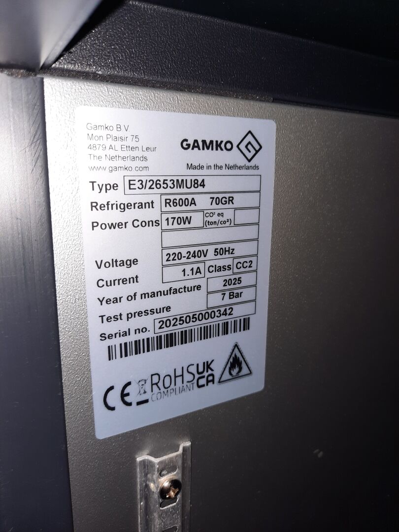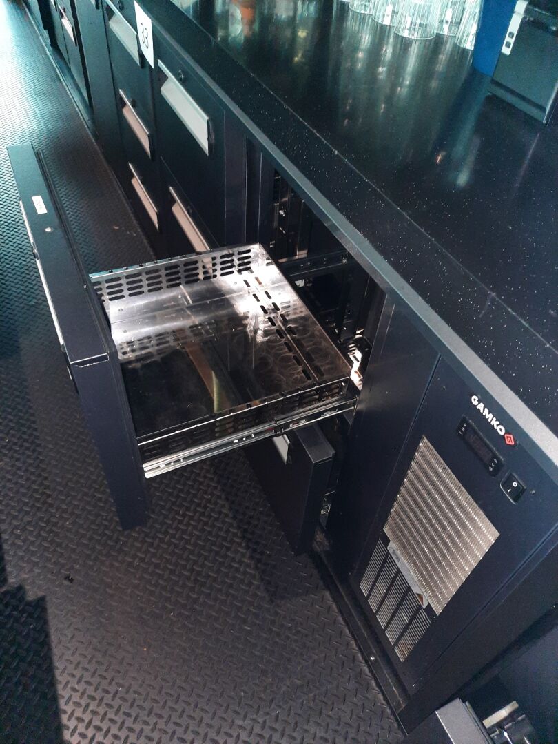 Tour réfrigéré GAMKO modèle E3/2653MU84 à froid positif, groupes intégrés, 1 vantail, 9 tiroirs (252 x 60 cm)