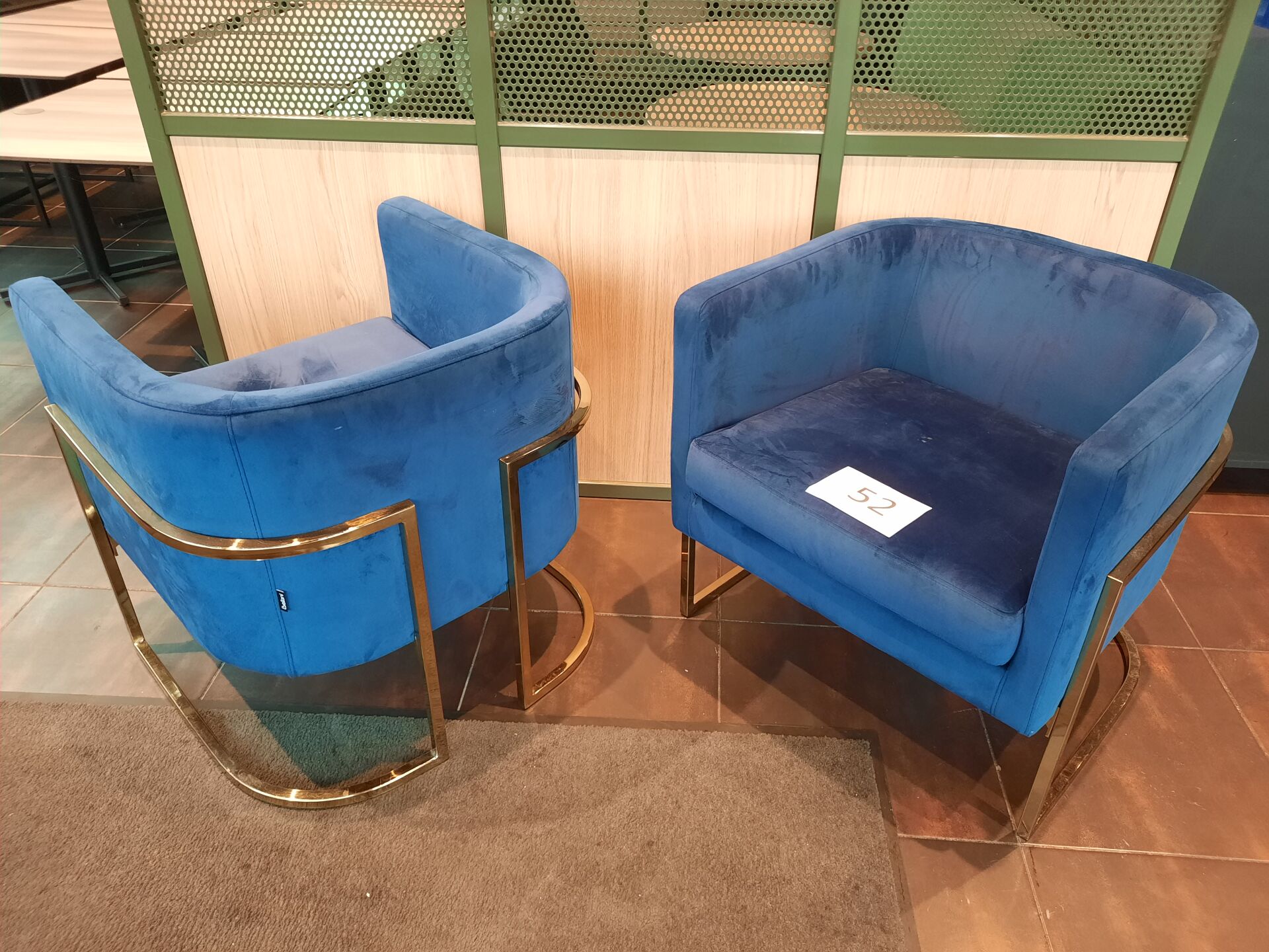 2 fauteuils BELIANI assise tissu bleu, piètement métal doré