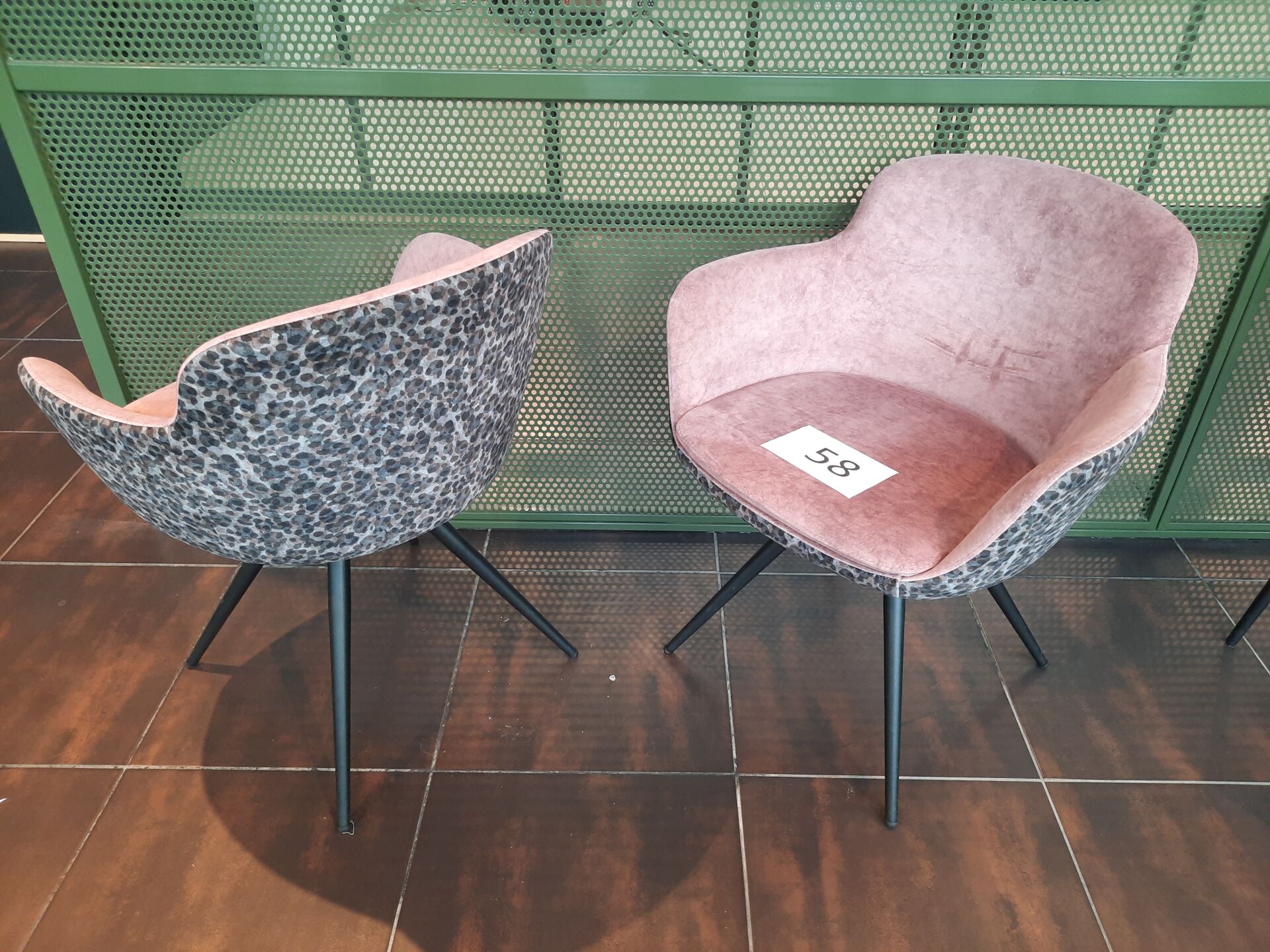 4 fauteuils à dossier façon léopard, piètement métal laqué noir