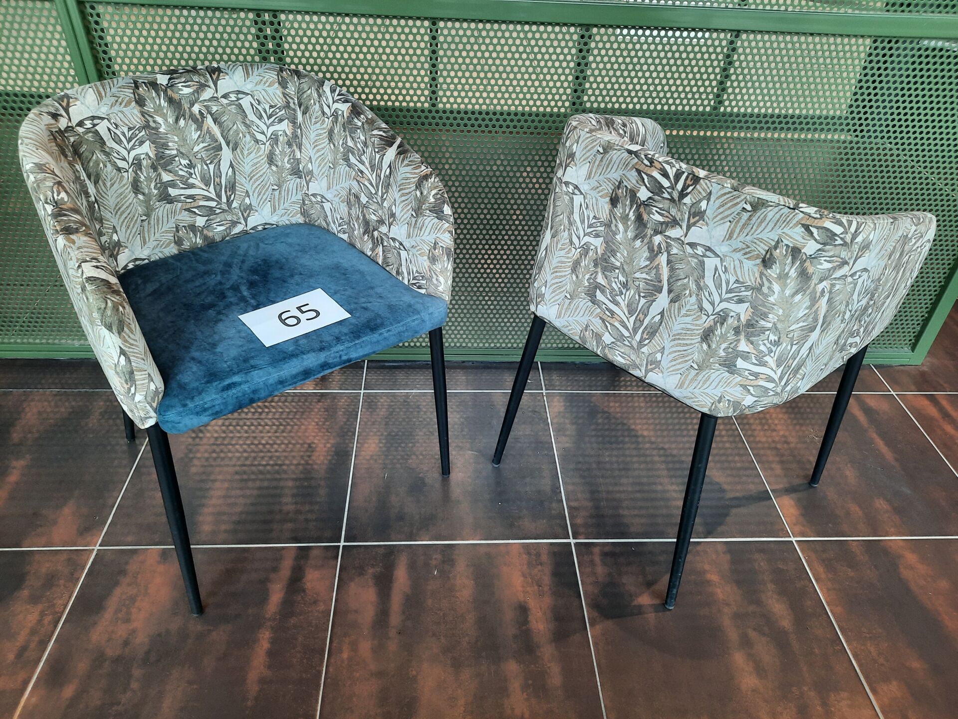 4 fauteuils à dossier à décor fleuri, piètement métal laqué noir