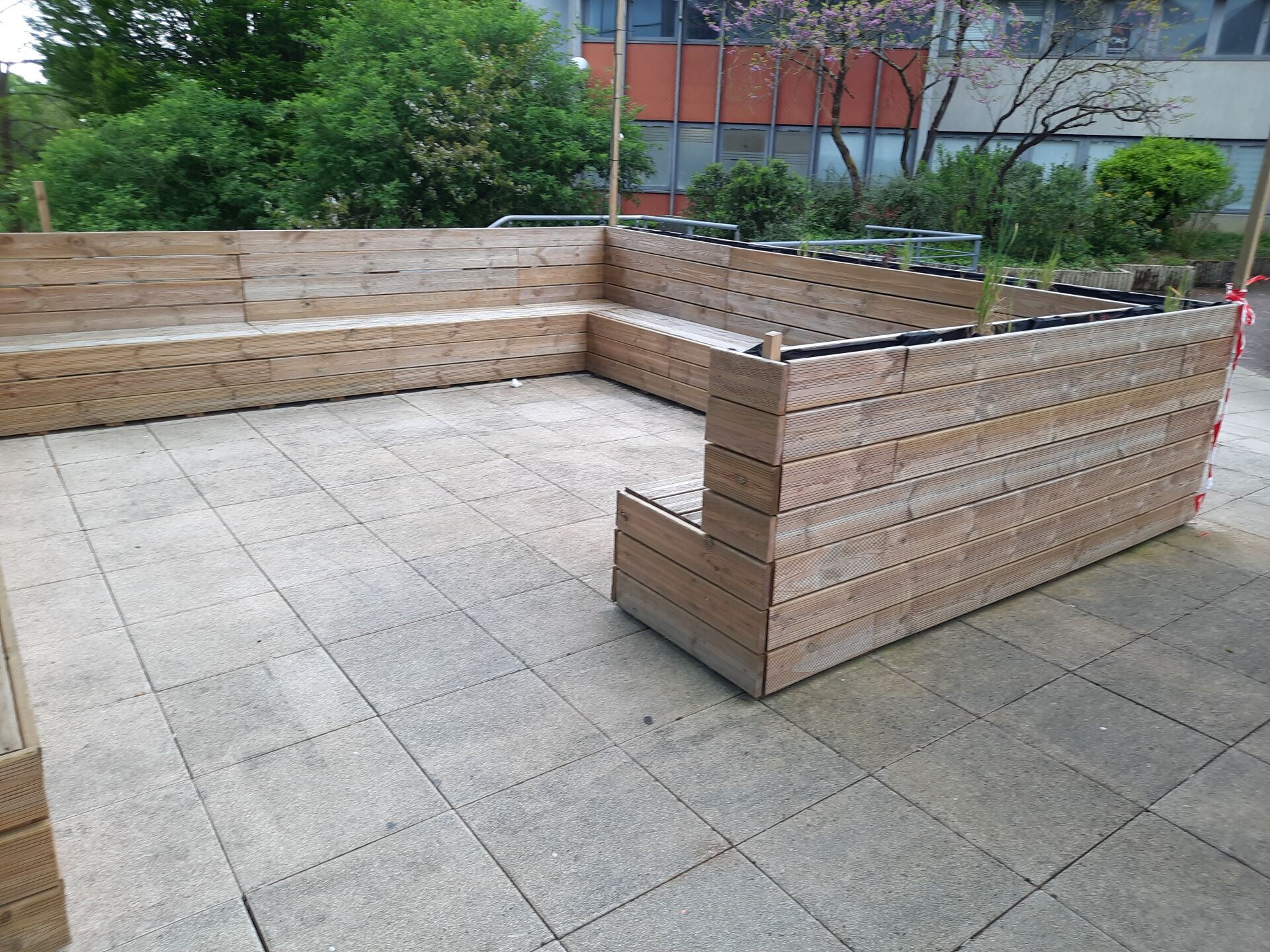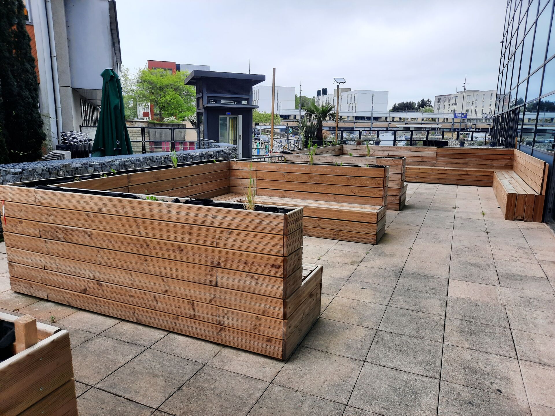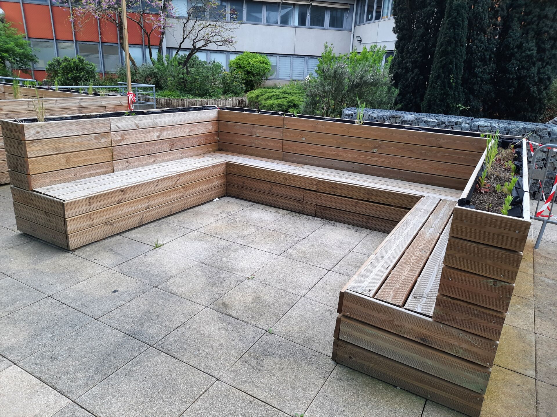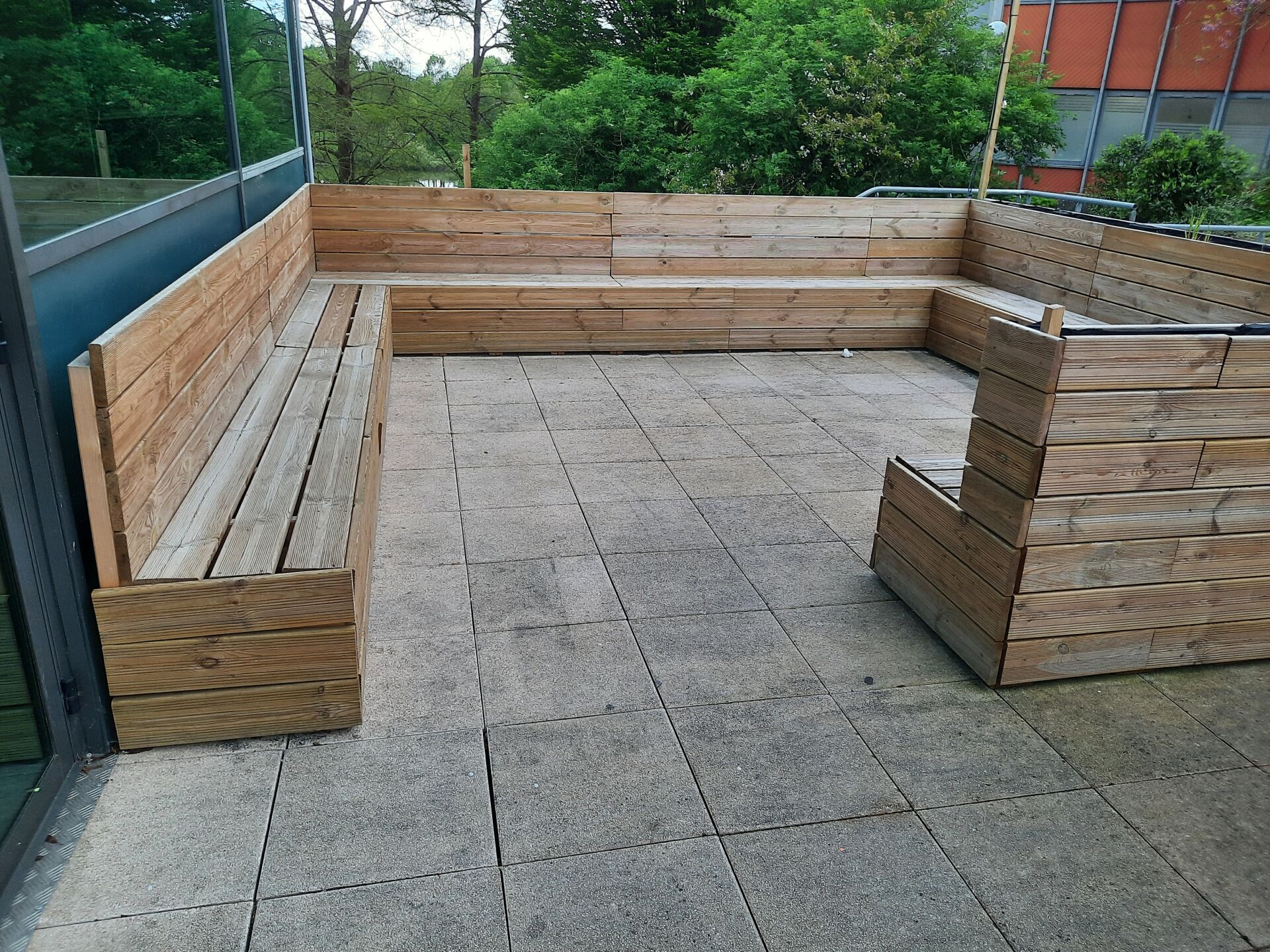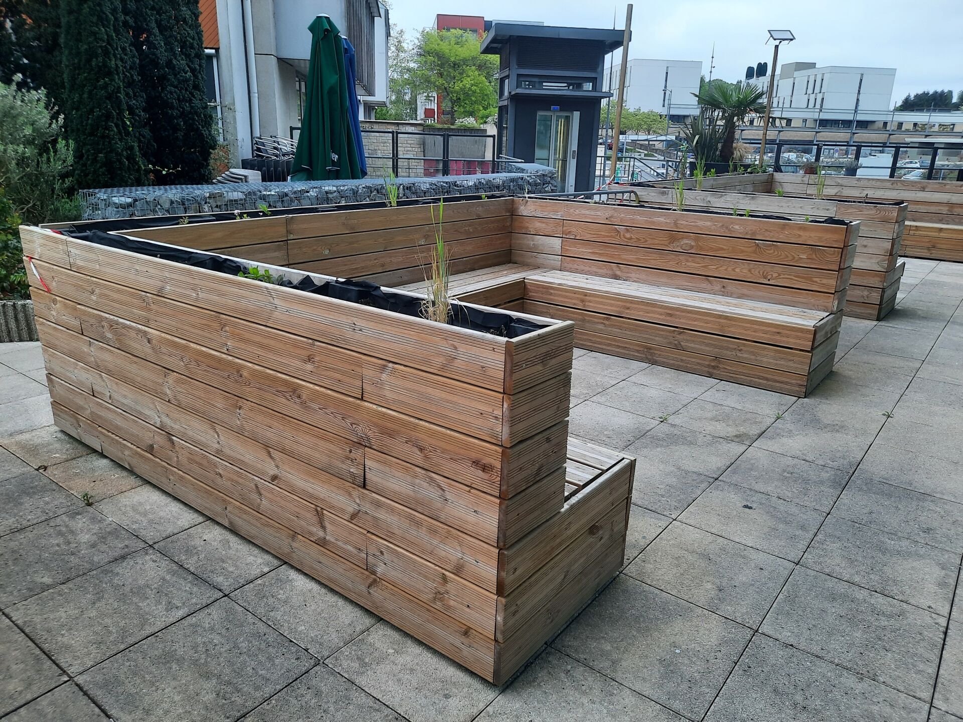 11 bancs en lames de terrasse traitées classe 4 (fabrication interne)