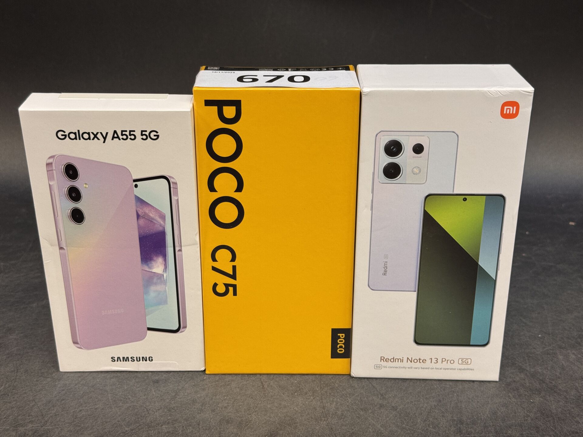 3 TELEPHONES PORTABLES : REDMI NOTE 13 PRO / POCO C75 / SAMSUNG GALAXY A55 5G (avec scellés) EXPEDITION POSSIBLE (ce lot chez vous en France métropolitaine pour 27,45€) Lot issu de colis non réclamés : état de fonctionnement non garanti, pouvant être bloqué)