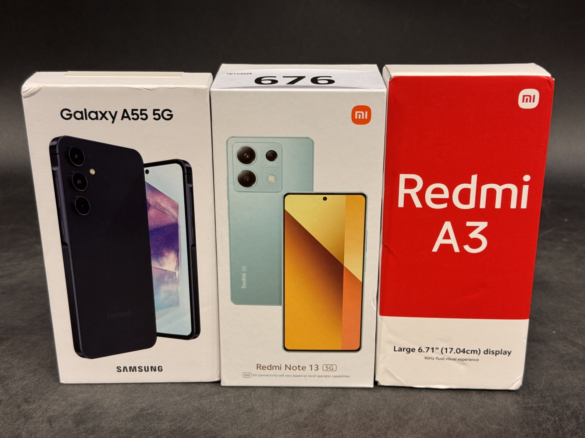 3 TELEPHONES PORTABLES : REDMI NOTE 13 / REDMI A3 / SAMSUNG GALAXY A55 5G (avec scellés) EXPEDITION POSSIBLE (ce lot chez vous en France métropolitaine pour 27,45€) Lot issu de colis non réclamés : état de fonctionnement non garanti, pouvant être bloqué)