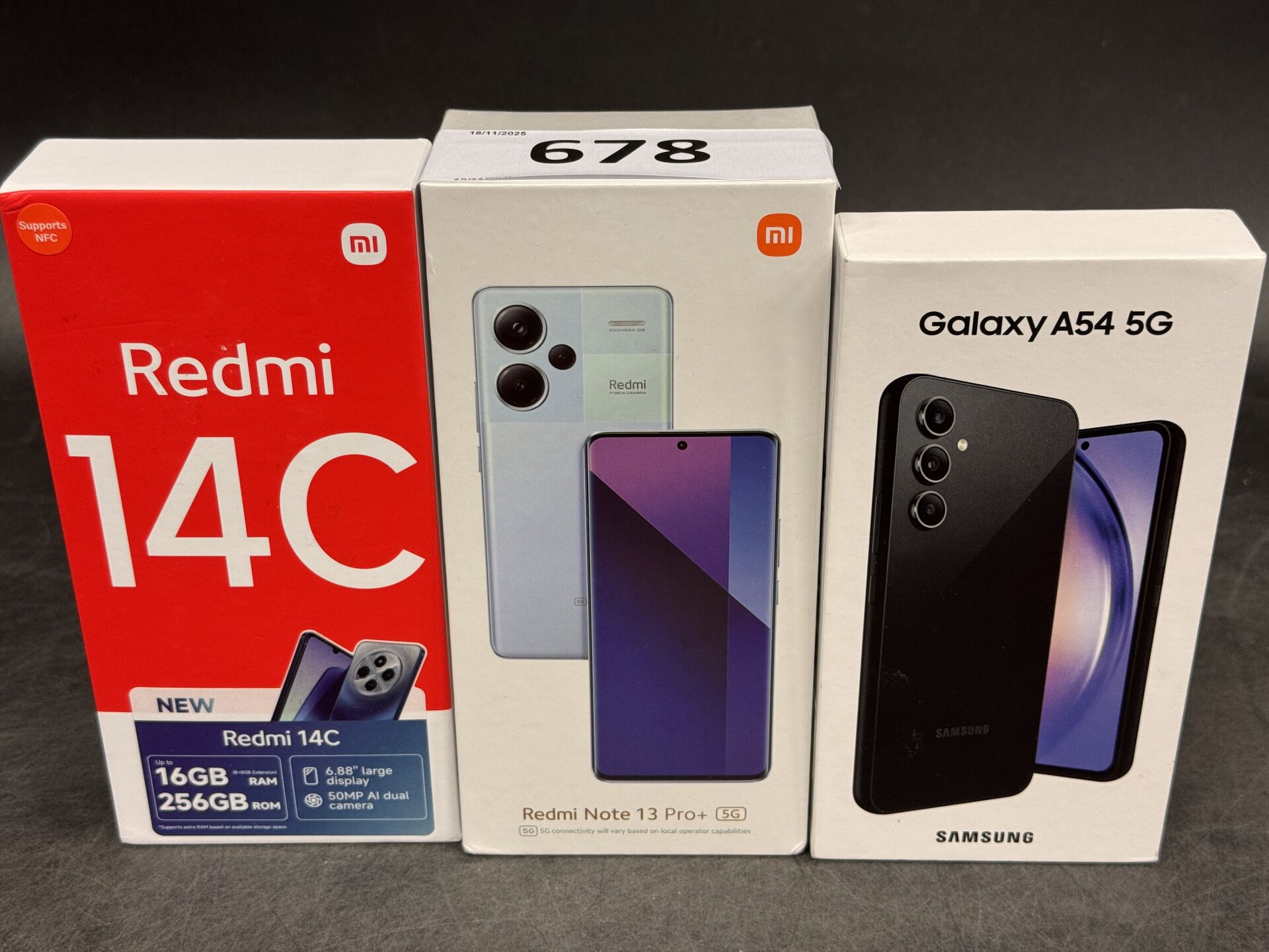 3 TELEPHONES PORTABLES : REDMI NOTE 13 PRO / REDMI 14C / SAMSUNG GALAXY A54 5G (avec scellés) EXPEDITION POSSIBLE (ce lot chez vous en France métropolitaine pour 27,45€) Lot issu de colis non réclamés : état de fonctionnement non garanti, pouvant être bloqué)