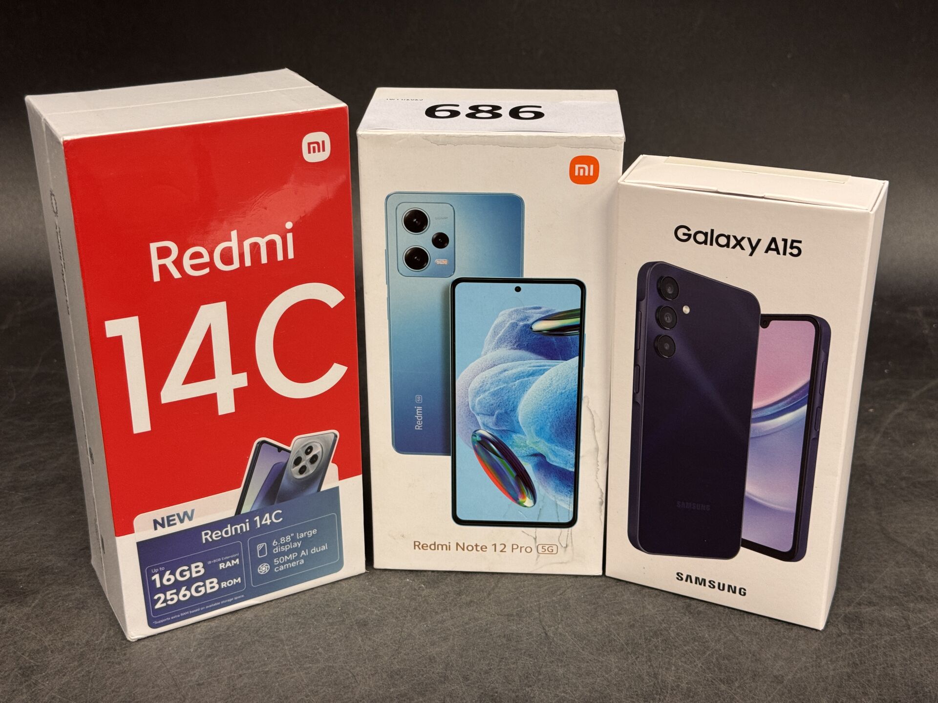 3 TELEPHONES PORTABLES : REDMI NOTE 12 PRO & 14C / SAMSUNG GALAXY A15 (avec scellés) EXPEDITION POSSIBLE (ce lot chez vous en France métropolitaine pour 27,45€) Lot issu de colis non réclamés : état de fonctionnement non garanti, pouvant être bloqué)