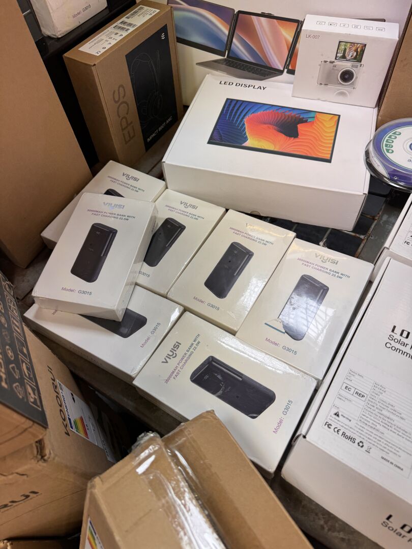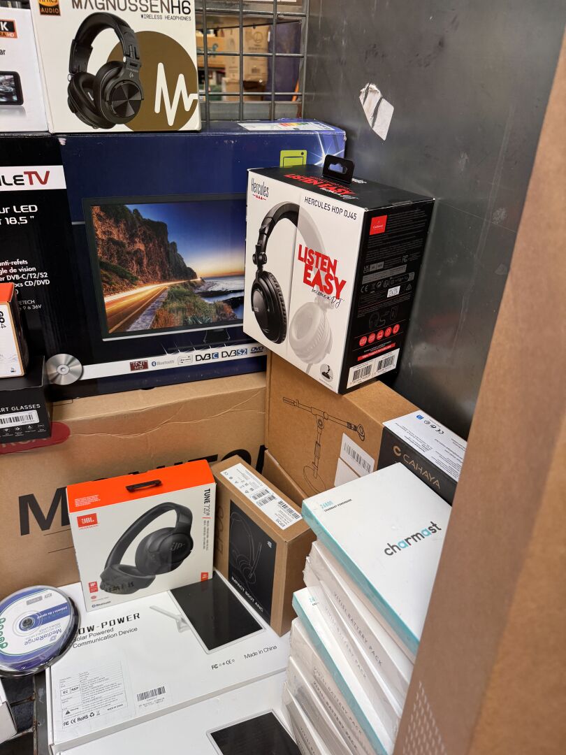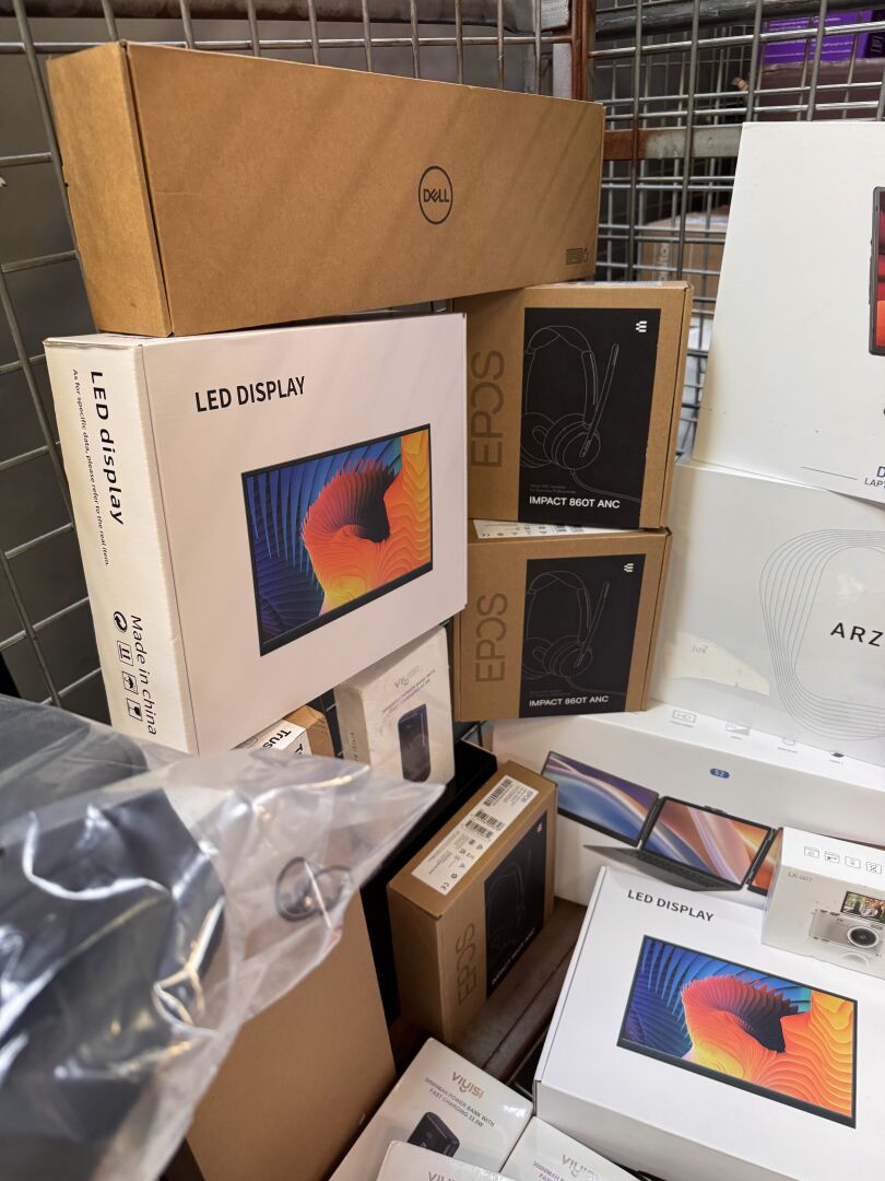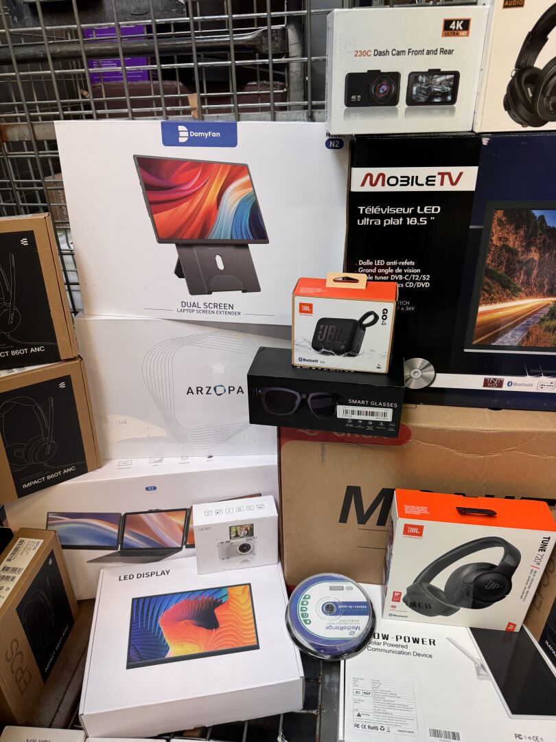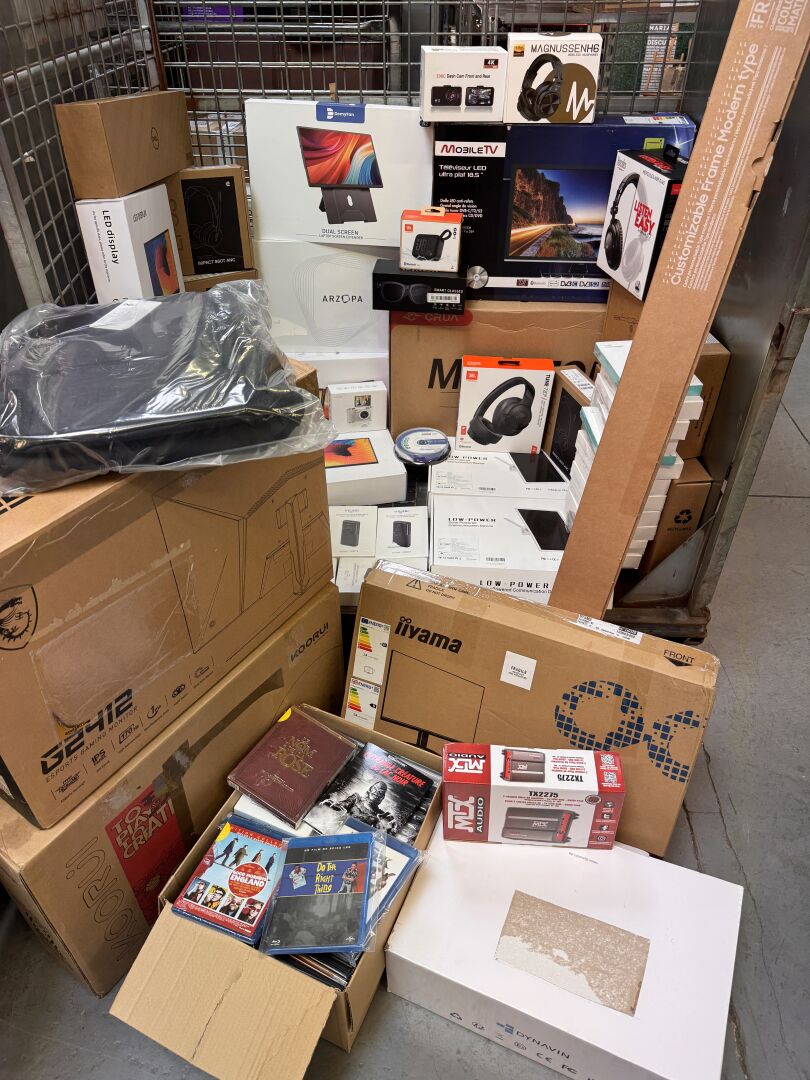 FORT ENSEMBLE DE MATERIEL MULTIMEDIA DONT ECRANS, BATTERIES EXTERNES, CASQUES, AMPLI, TABLETTE (dont produits sans scellé, traces d'usage) (expédition sur devis) Lot issu de colis non réclamés : état de fonctionnement non garanti.
