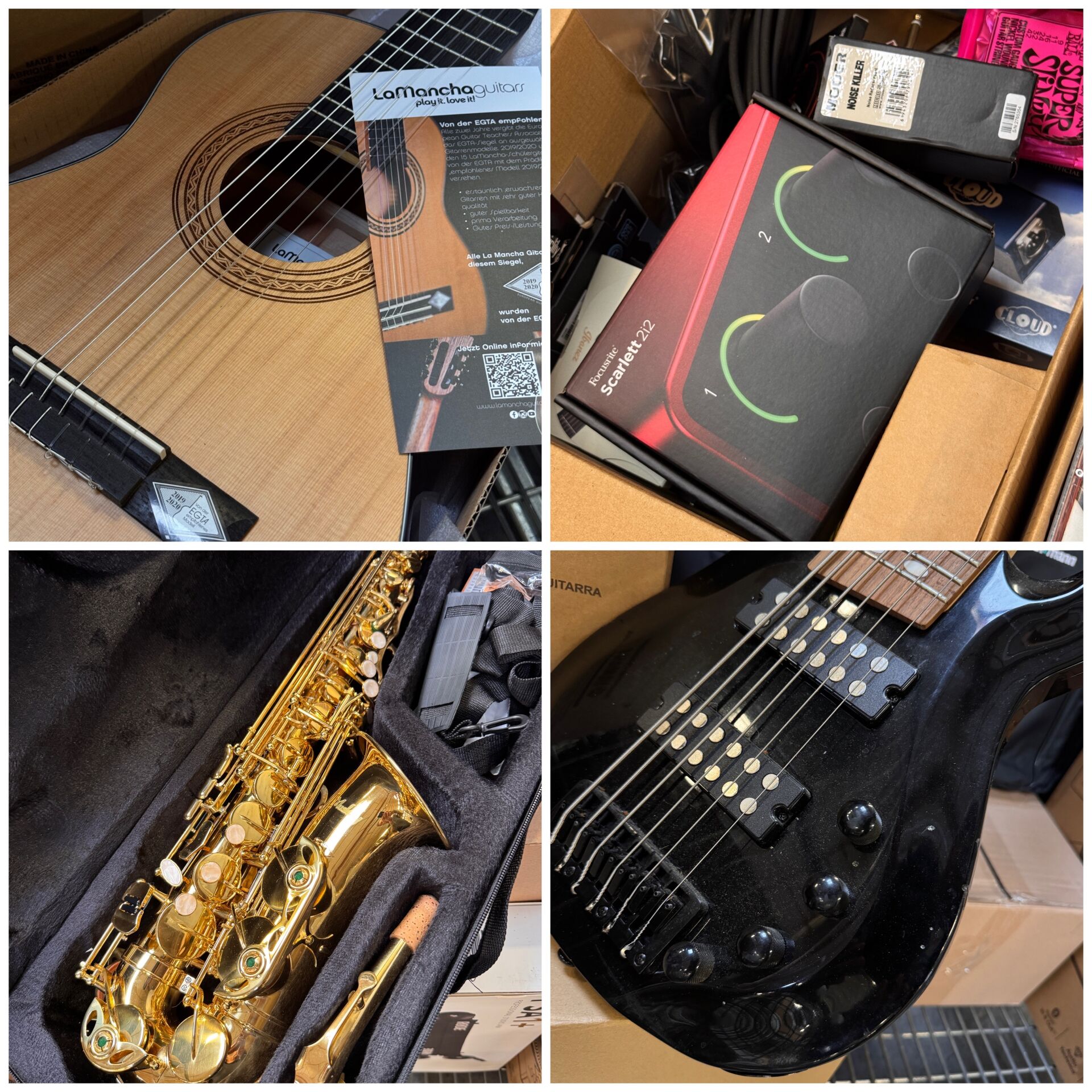 FORT ENSEMBLE DE MATERIEL DE MUSIQUE DONT GUITARE, CLAVIER, HOUSSE, MICRO, CD / YAMAHA, LA MANCHA, FOCURSITE, MUSLADY (expédition sur devis) Lot issu de colis non réclamés : état de fonctionnement non garanti.