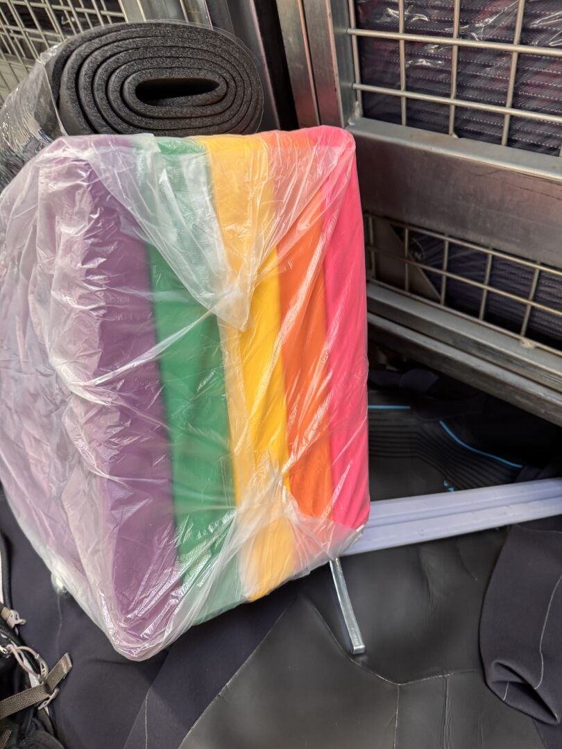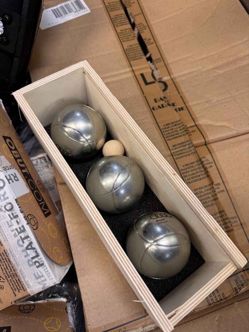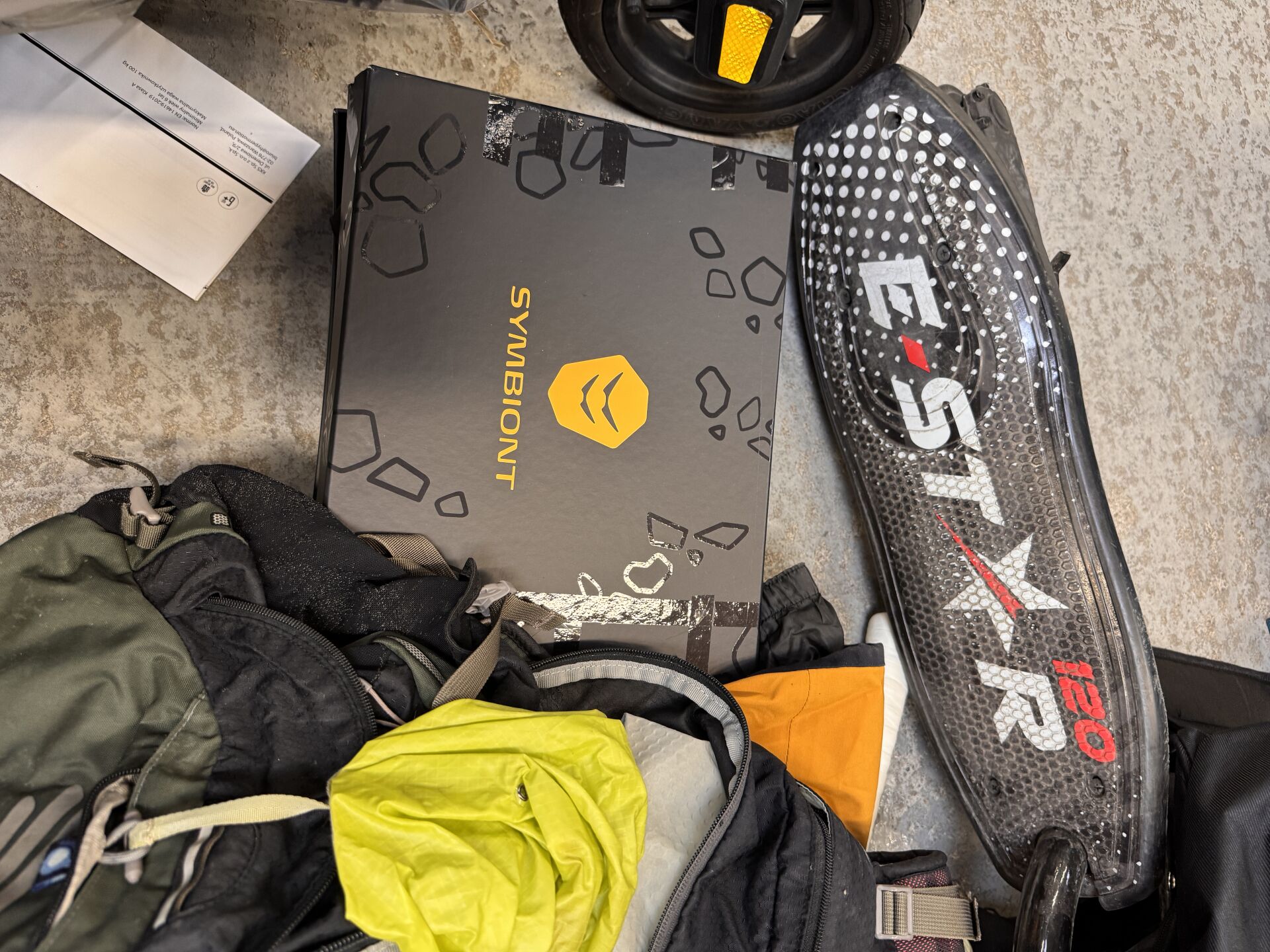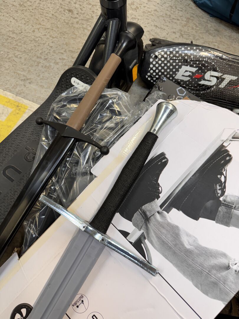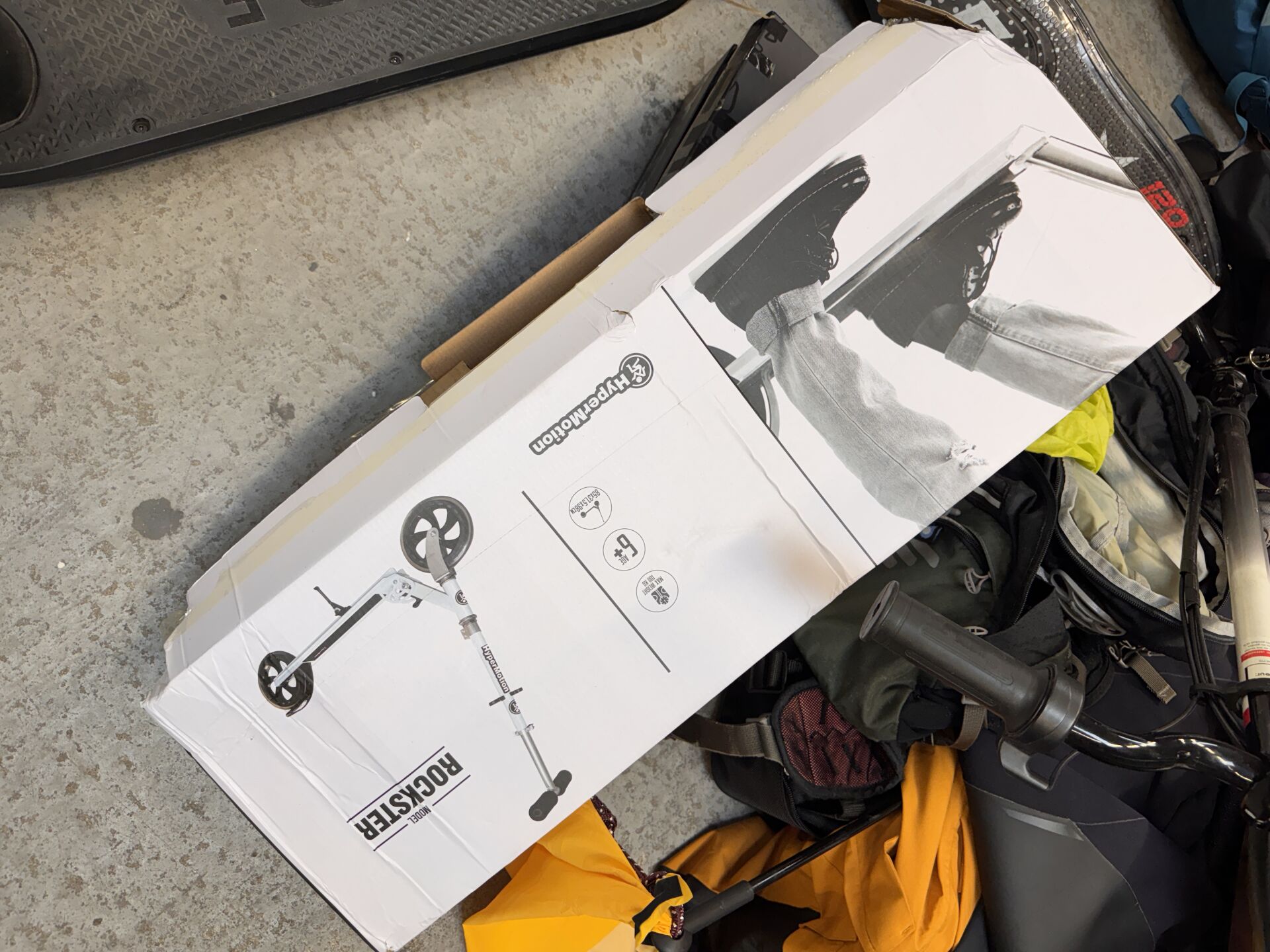 FORT ENSEMBLE D'ARTICLES SPORT & LOISIRS DONT TROTTINETTE, TAPIS, POIDS, RAQUETTE, BOULE DE BOWLING (expédition sur devis) (traces d'usage, retour sav, avarie de transport, seconde main, en l'état)
