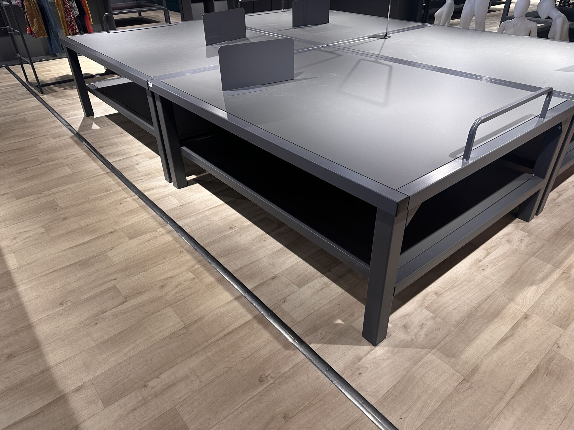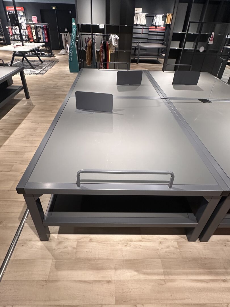 2 tables en mélaminé gris et métal laqué gris Haut. : 78 cm - Larg. : 200 cm - Prof. : 160 cm - Haut. montants : 94 cm par table VENDU SUR DESIGNATION - VISIBLE LE 20/10 JUSQU A 17 H - RETRAIT A REDON LE 28/10 DE 9 H 30 A 17 H