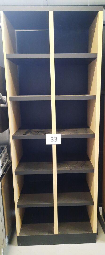 Etagère roulante mélaminé noir et bois à 12 cases 89 x 240 x 50 cm