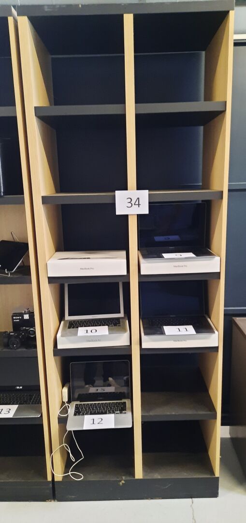 Etagère roulante mélaminé noir et bois à 12 cases 89 x 240 x 50 cm