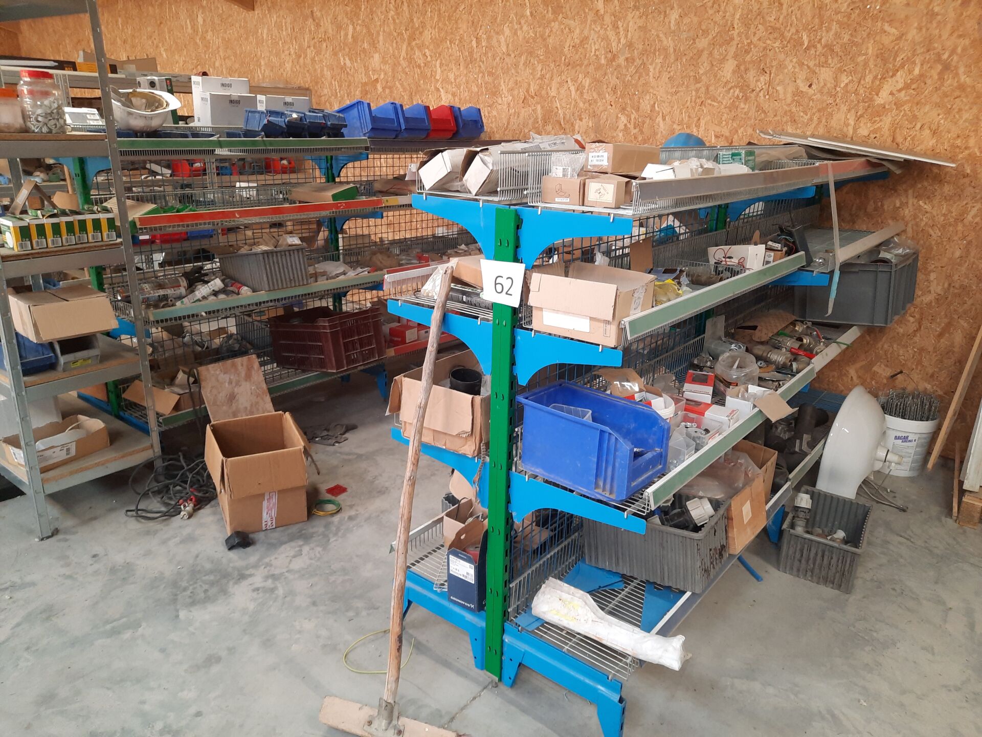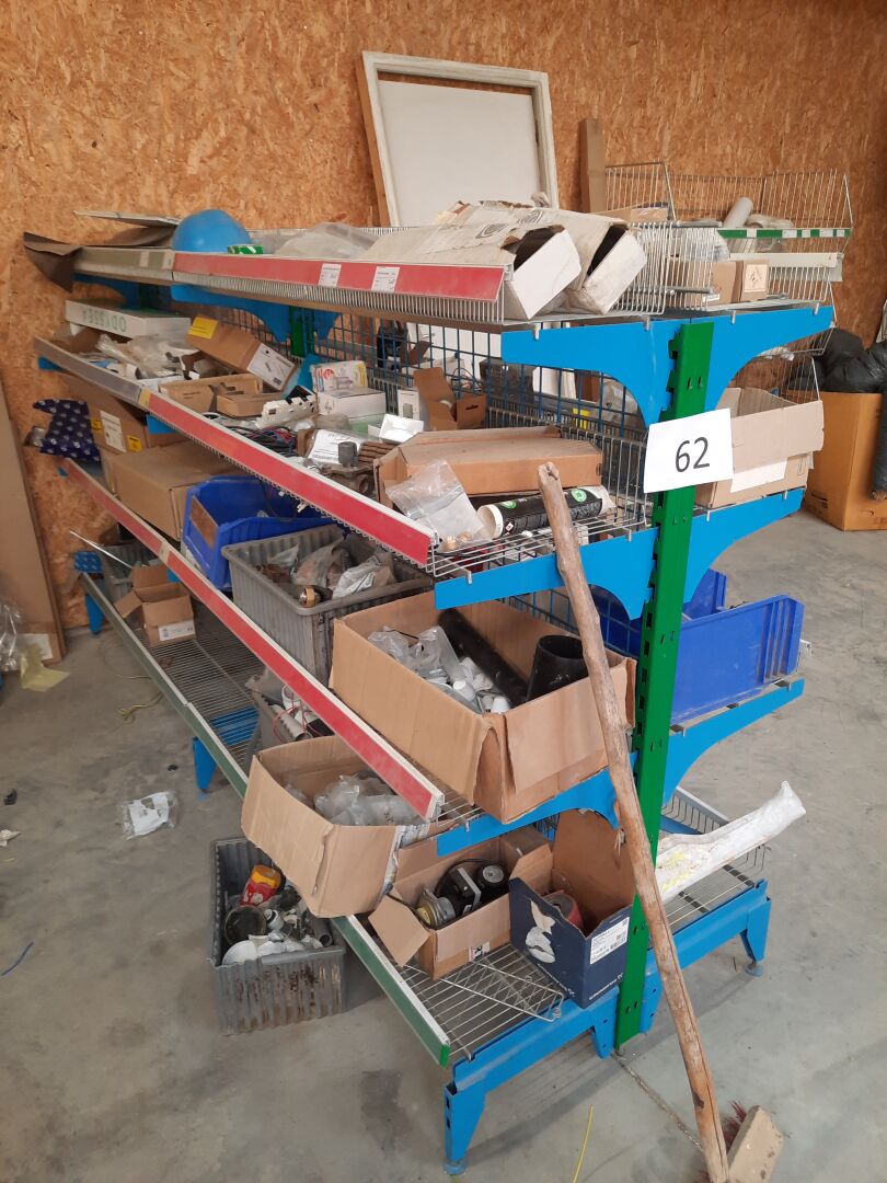 Environ 5 mètres linéaires composé de 2 doubles gondoles en métal laqué vert et blanc. 270x156x90 cm