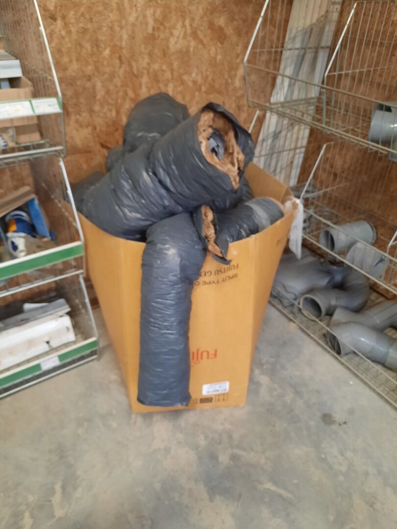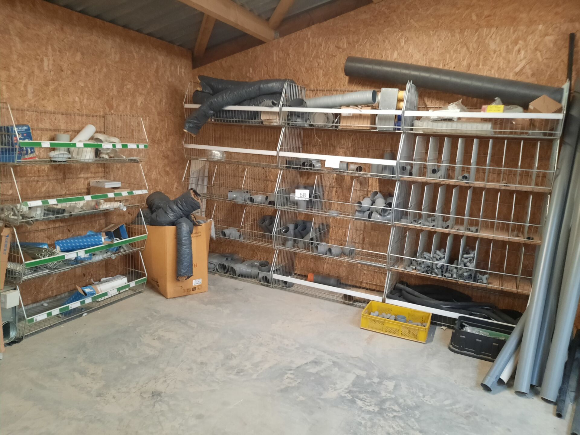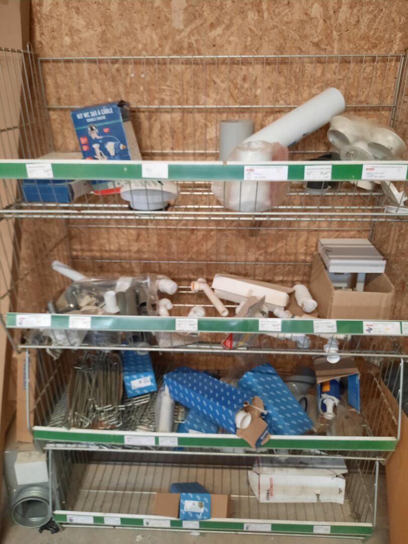 DANS LES BACS FILS Stock de plomberie et VMC dont raccords PVC, mécanismes de chasse (GROHE, SIAMP), bouches d'aération, gaines isolées, éléments de VMC